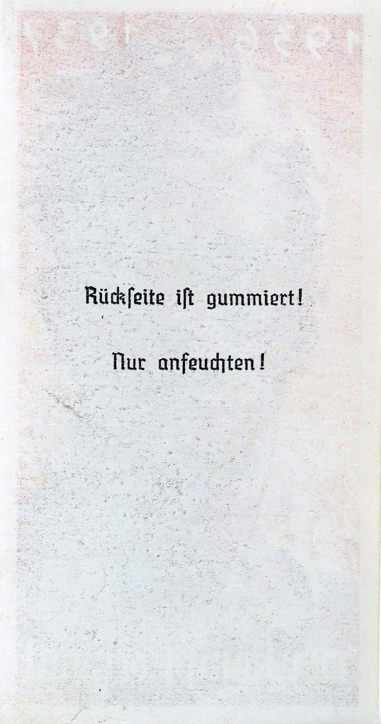 [Below: Reverse, this says 'Papier patentgummiert, nur anfeuchten' (Paper with a patented gum coating, just moisten).]