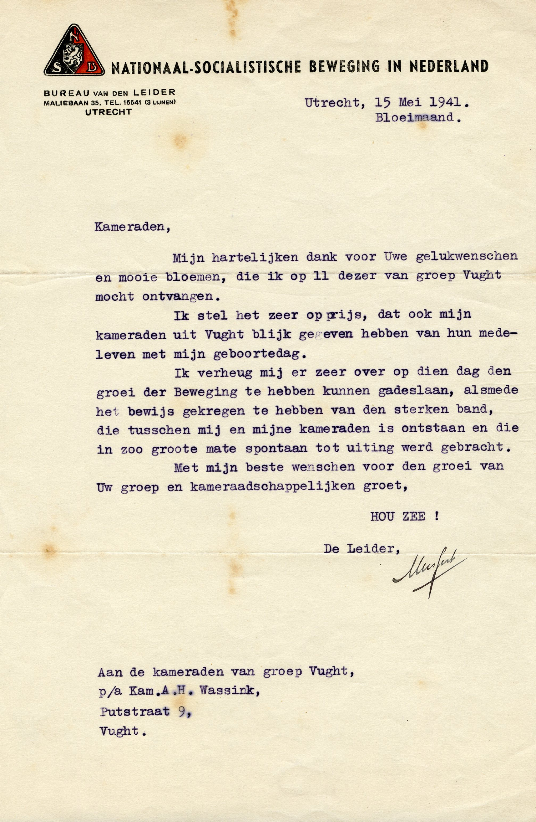 I very much appreciate that my comrades from Vught also showed their sympathy on my birthday.