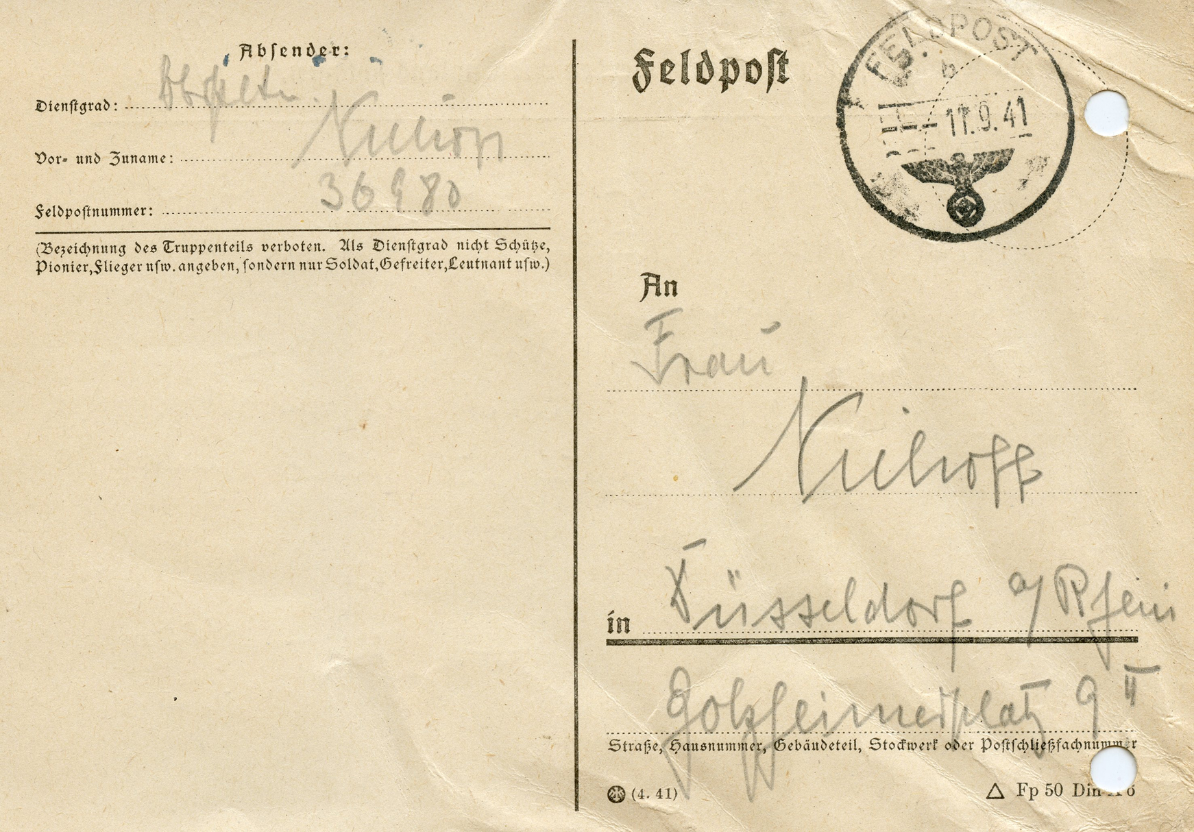 Adjutantur: Fernruf: A2 Flora 6841'