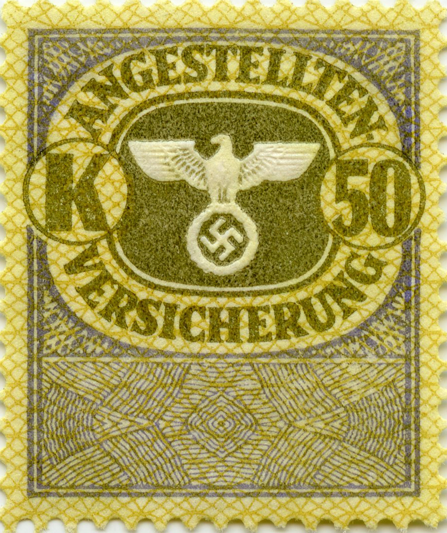 [Below: This a 'Angestellten-Versicherung' (Employee Insurance) dues stamp.]