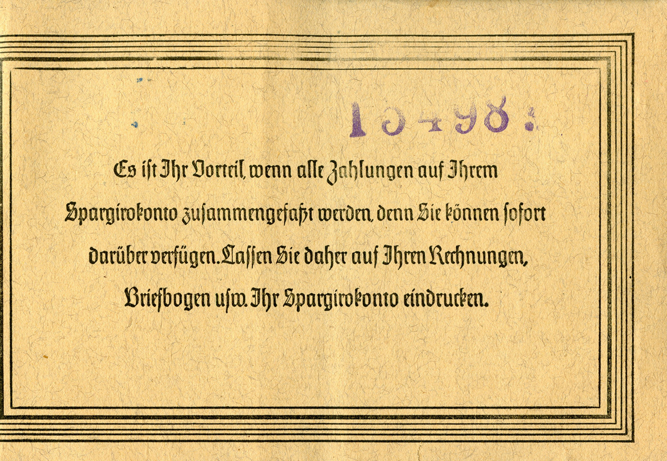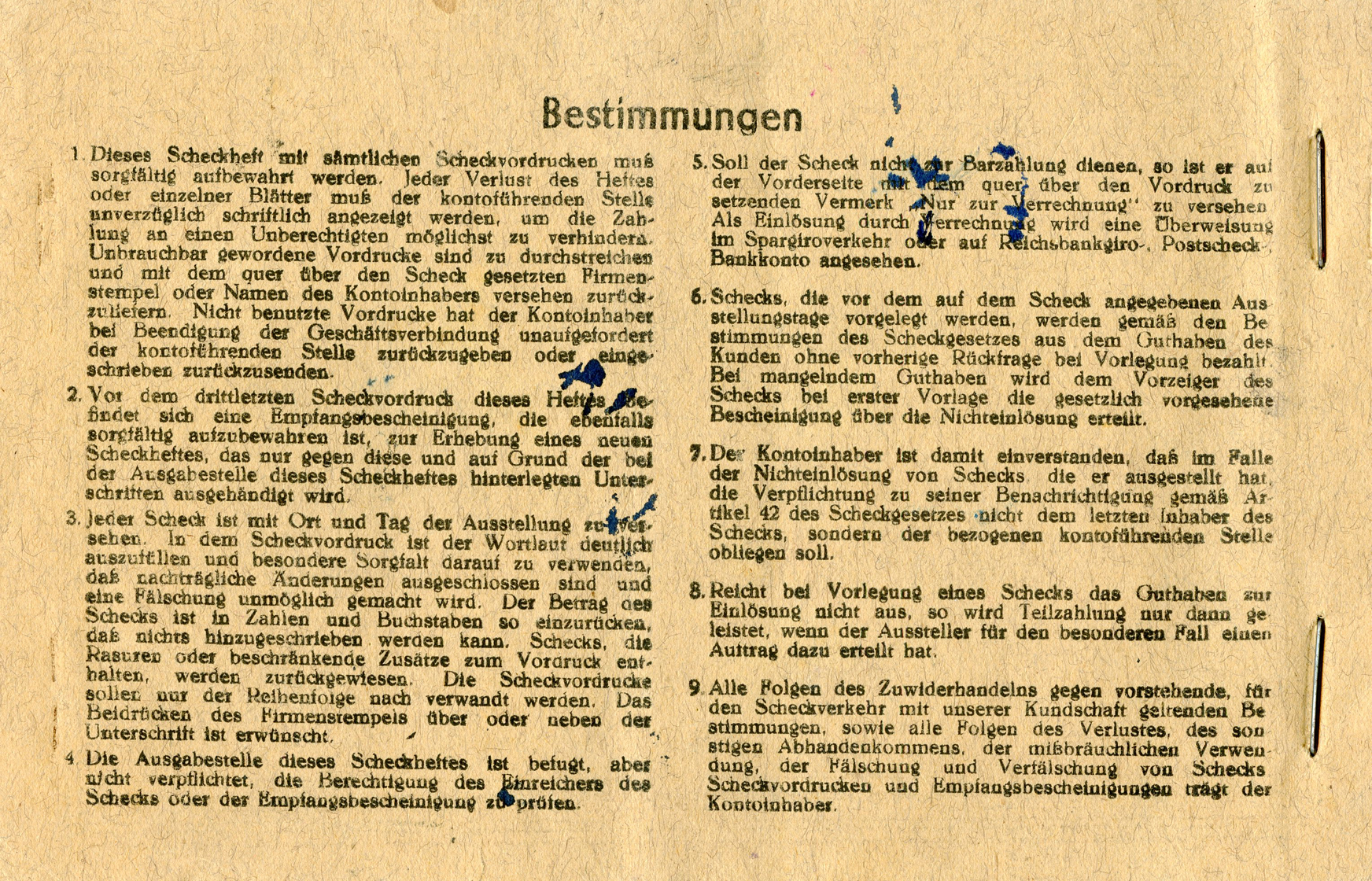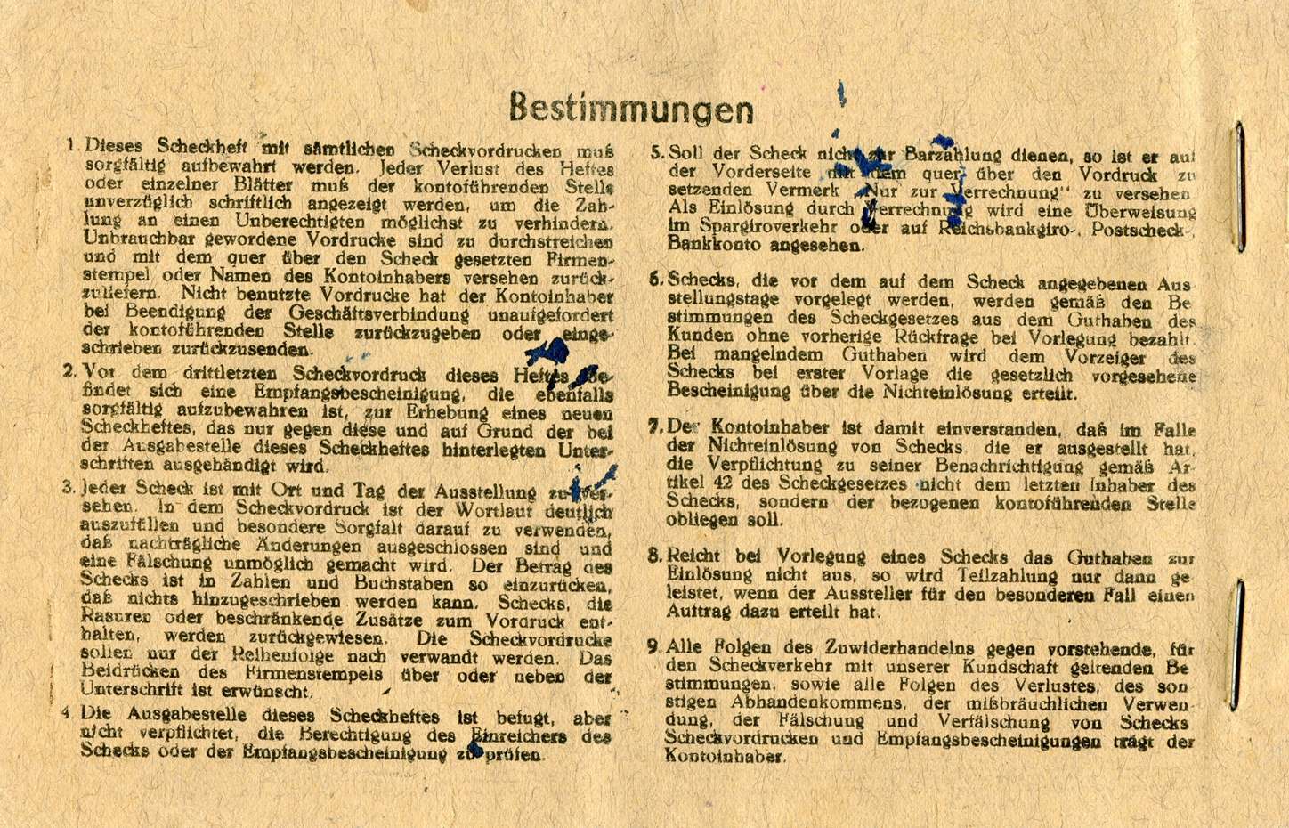 [Below: This rare booklet of checks says 'Scheckvordrucke' (check forms).]