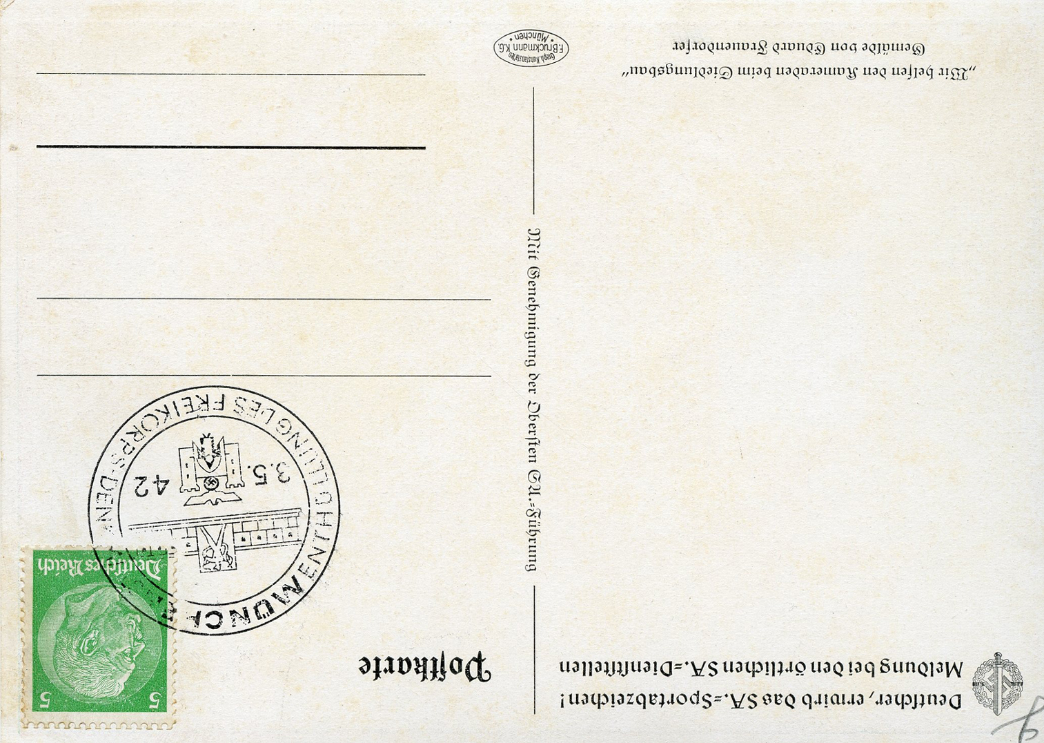 [Below: This is a very rare postcard. It says: 'Wien 1939 - 20.-27. August - Studenten Spiele' (Vienna 1939 - August 20-27 - Student Games).]