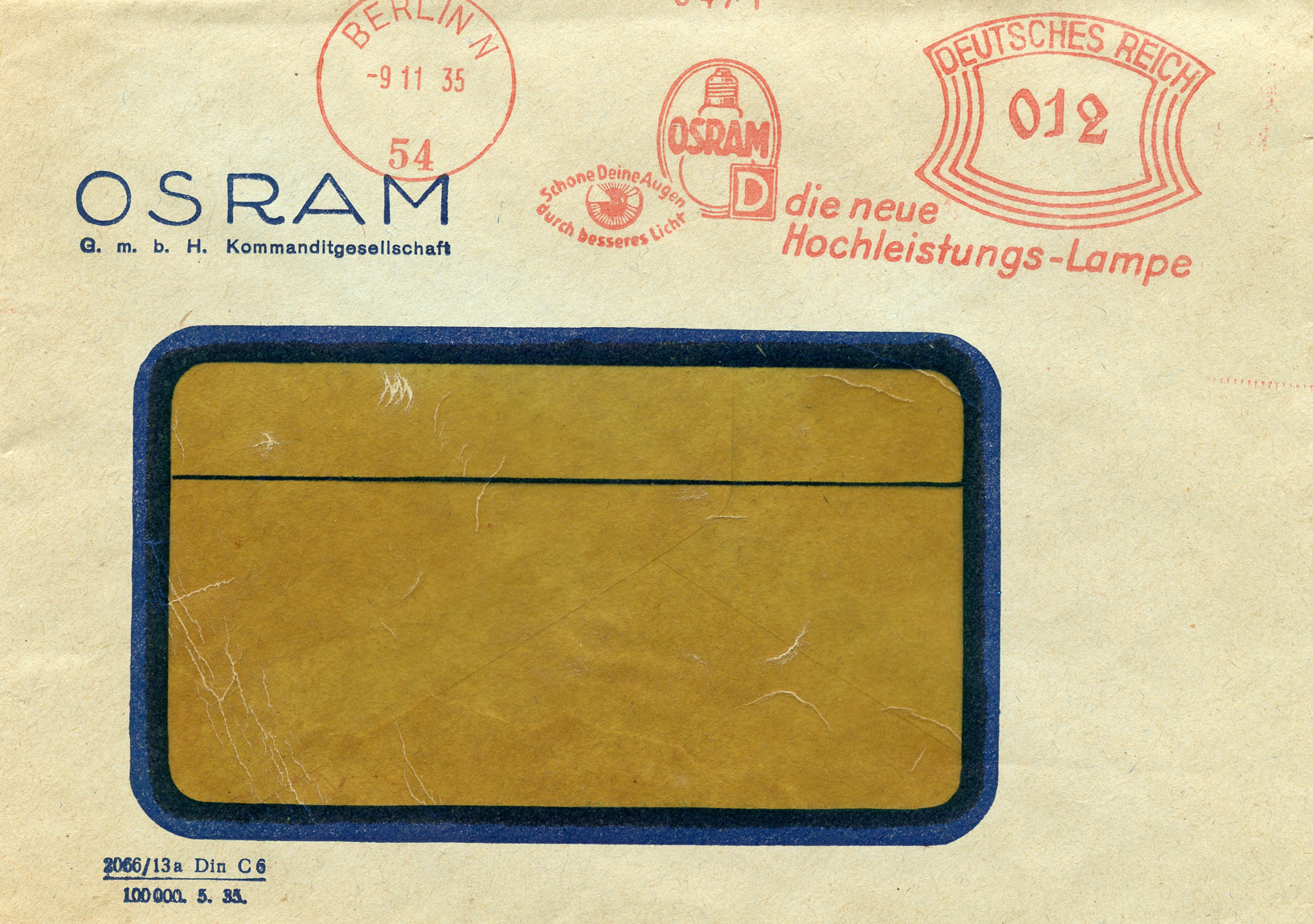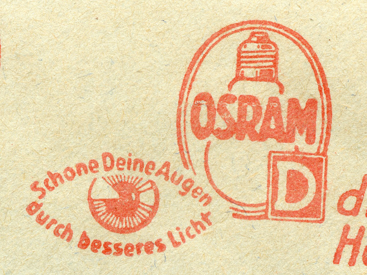 [Below: Here is another eye-related envelope. Osram is still in operation, now called Osram Sylvania and is based in the USA. This was canceled on November 9, 1935. It says: