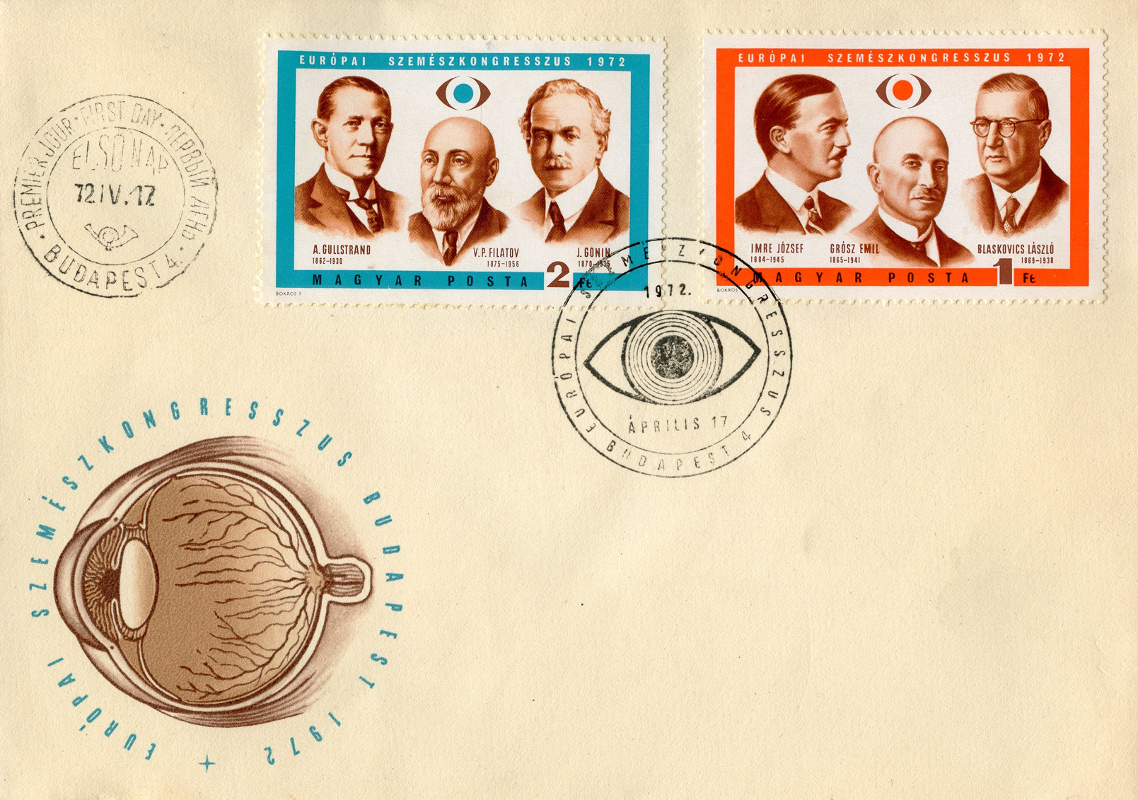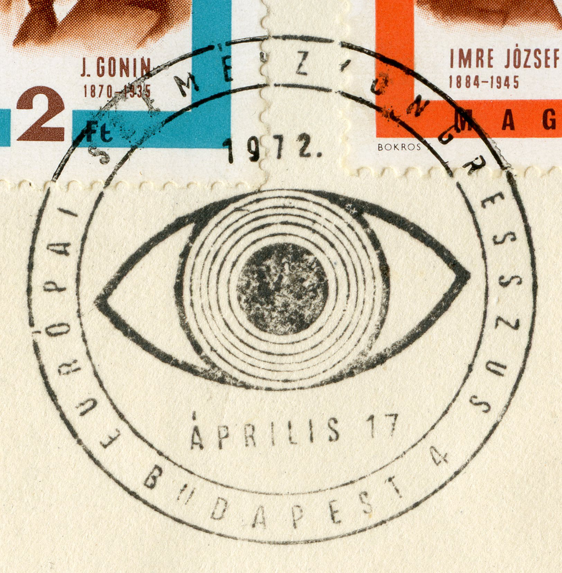 [Below: Another eye-related envelope. This one is from Hungary and was postmarked in 1972.]