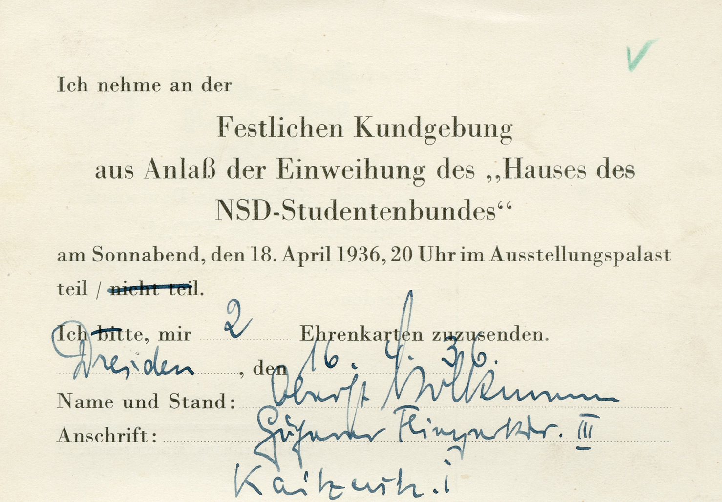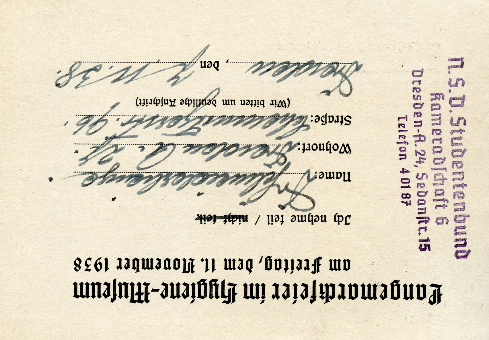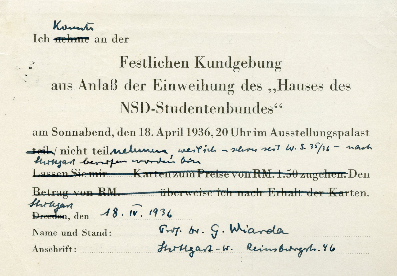 (To the National Socialist German Students' League of the NSDAP - University Group Technical University Dresden).