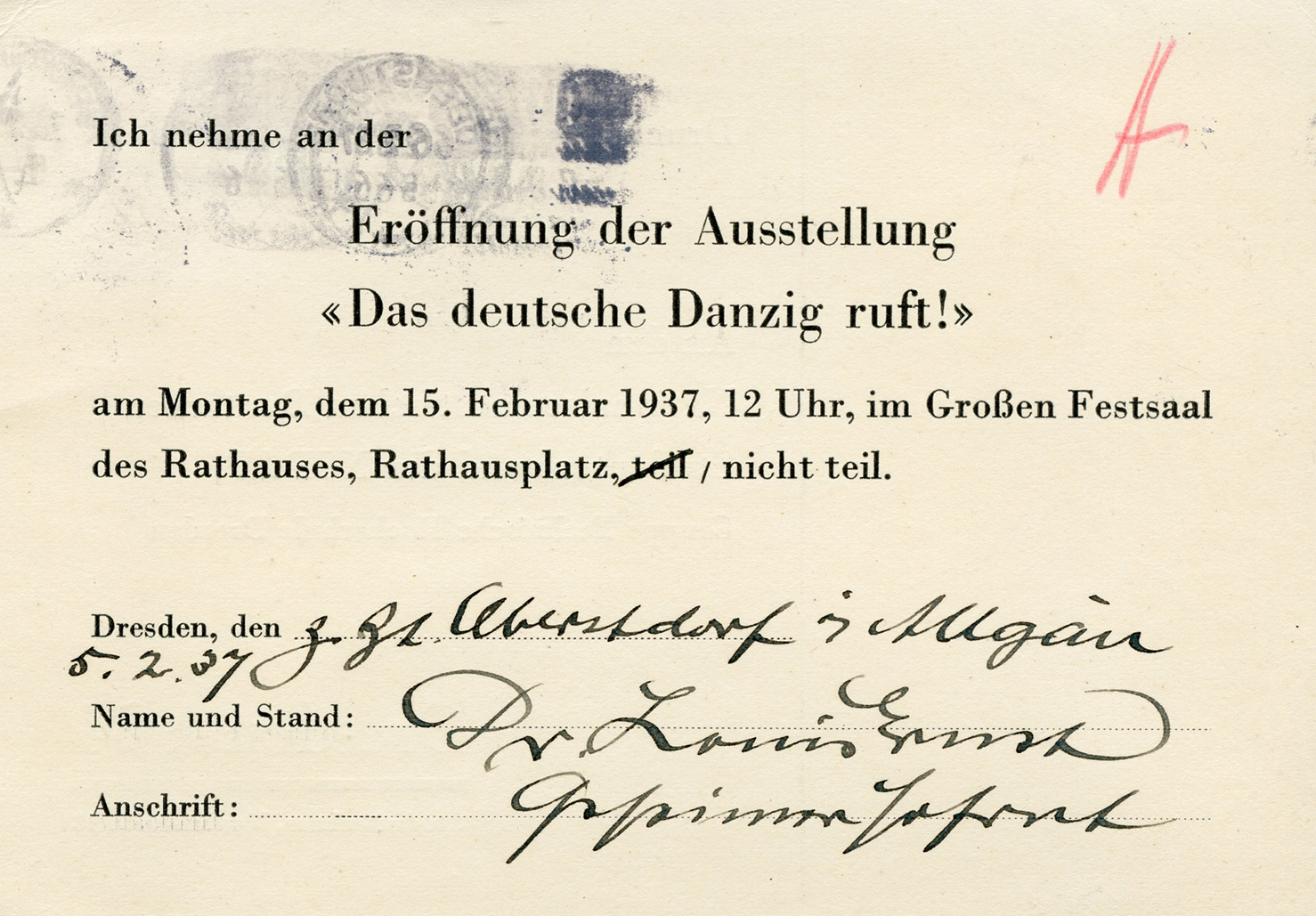 'Ich nehme an der Eröffnung der Ausstellung "Das deutsche Danzig ruft!"