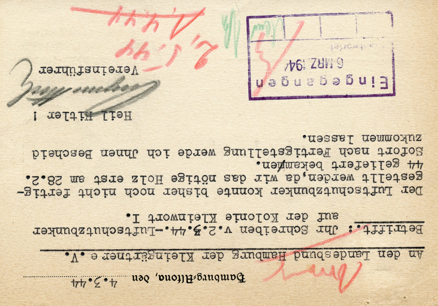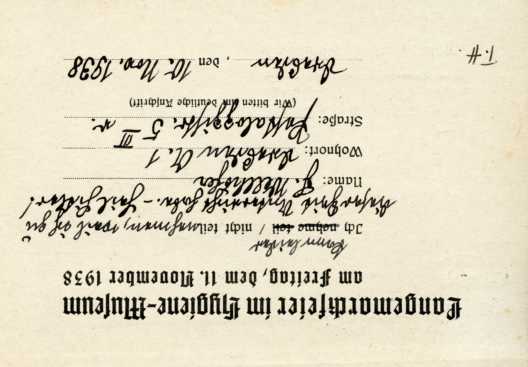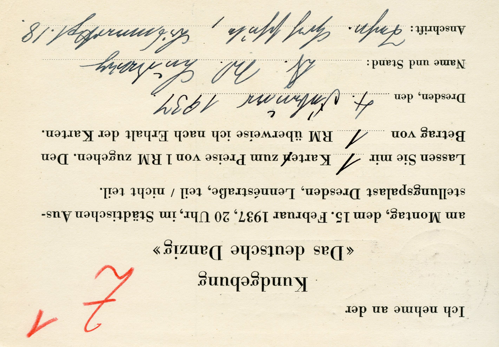 'Lassen Sie mir 1 Karte zum Preise von 1 RM zugehen. Den Betrag von 1 RM überweise ich nach Erhalt Karten.'