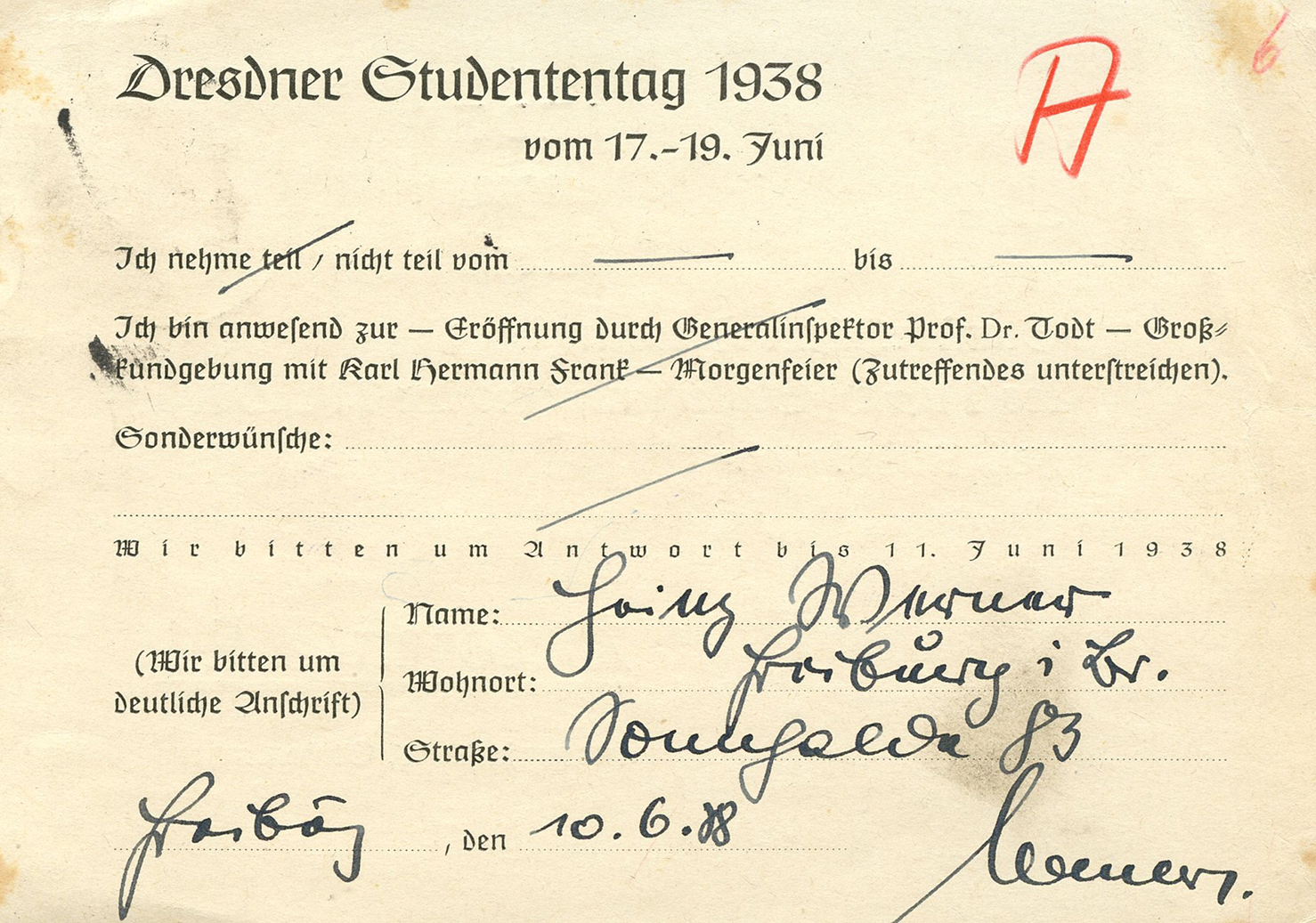 'Dresdner Studententag 1938 vom 17.-19. Juni - Ich bin anwesend zur Eröffnung durch Generalinspektor Prof. Dr. Todt'