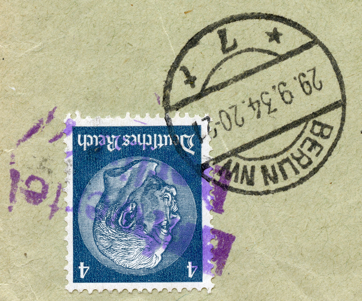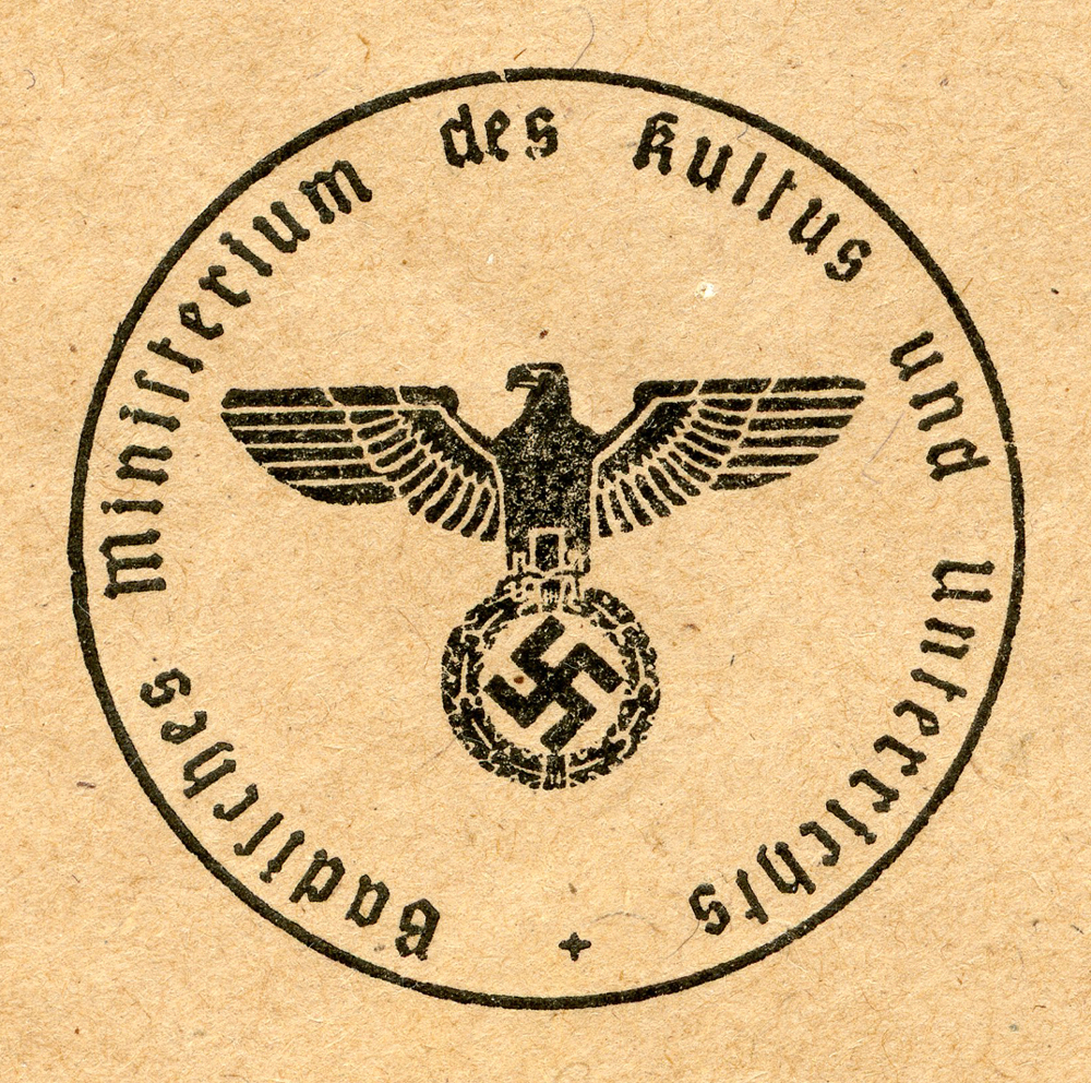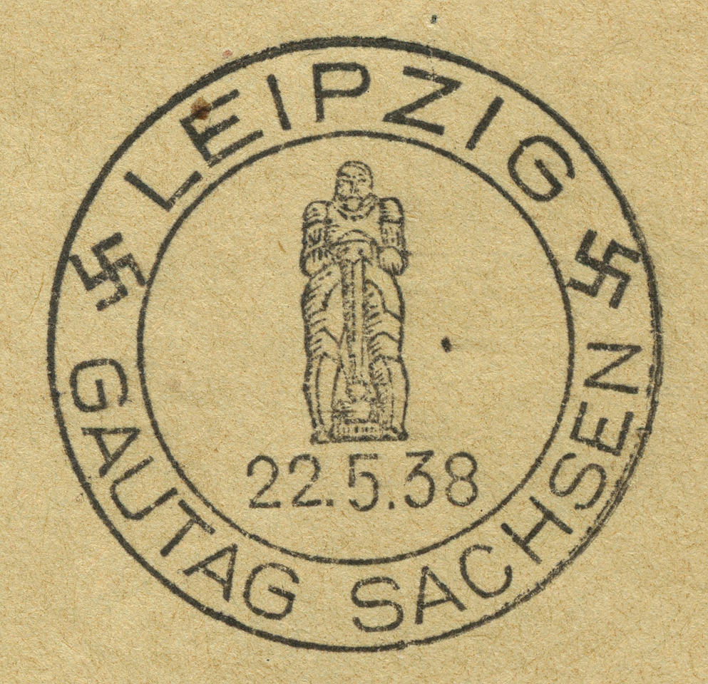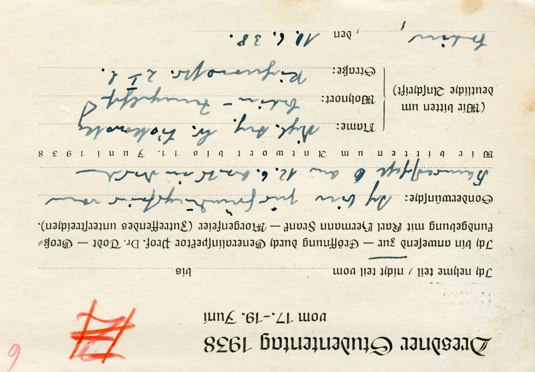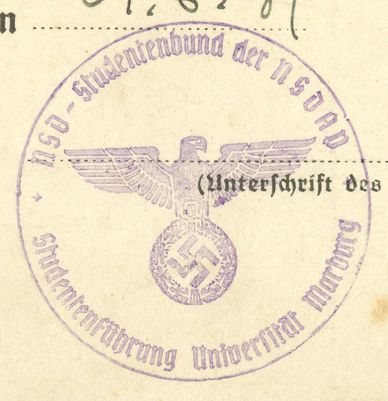 In the lower lefthand corner we see 'N.S.D. St. B.' which stands for Nationalsozialistischen Deutschen Studentenbund. Canceled on April 18, 1936.]
