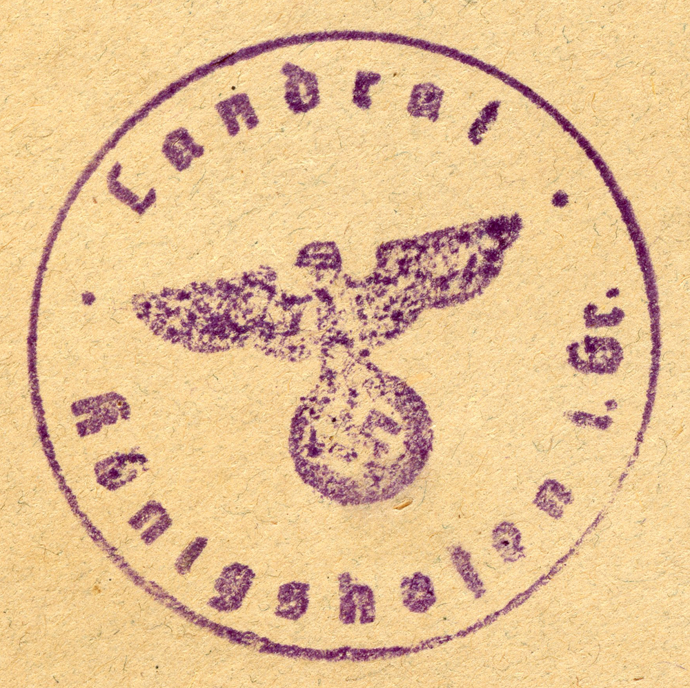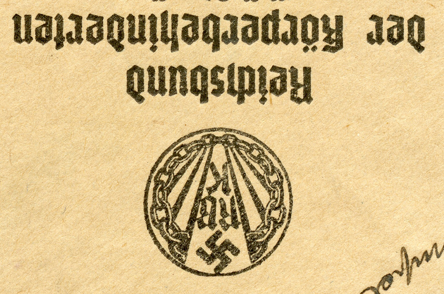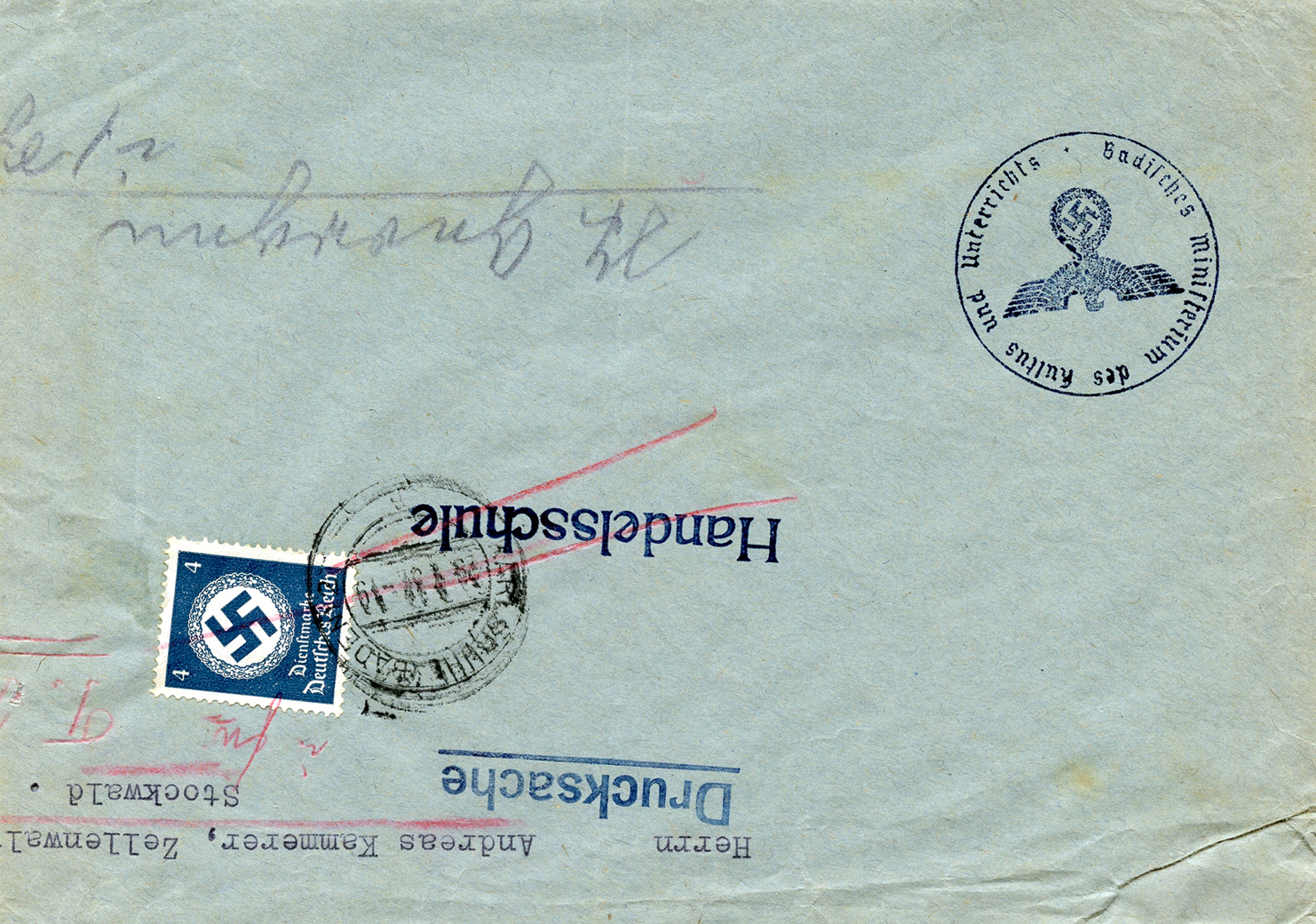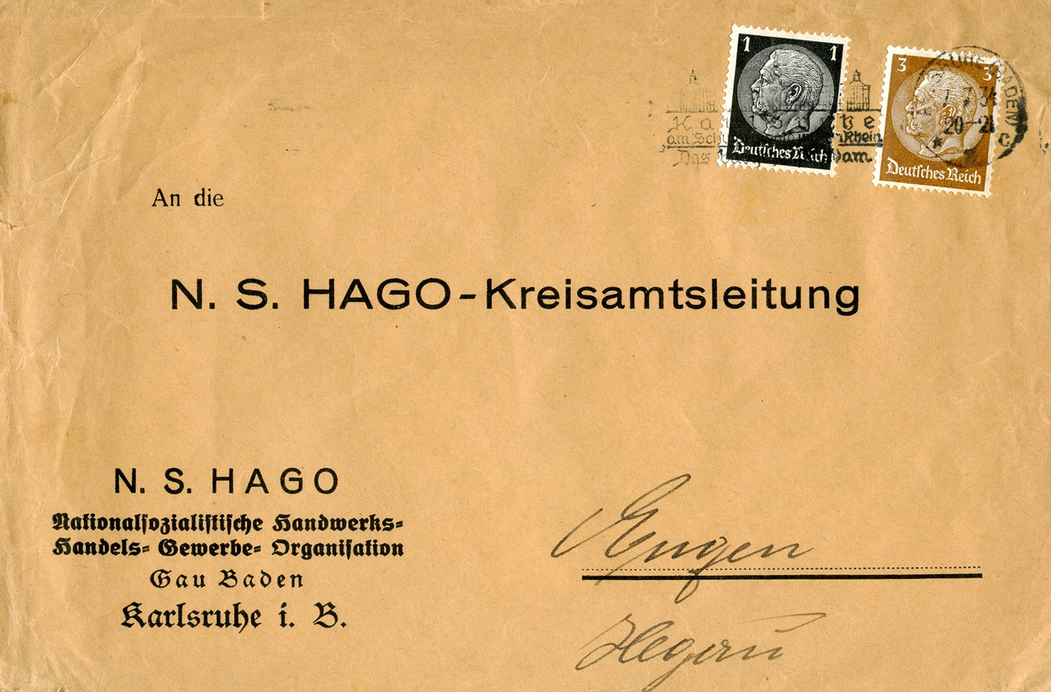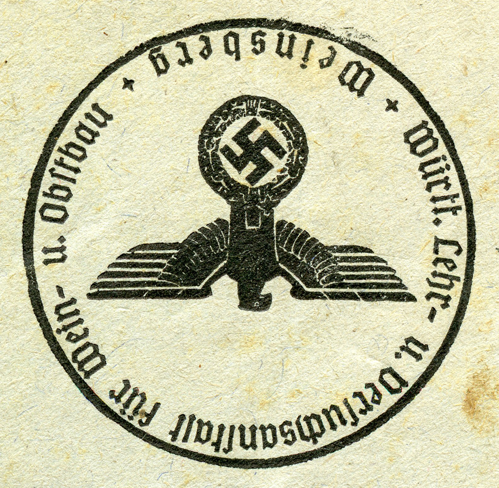 In the lower lefthand corner we see 'N.S.D. St. B.' which stands for Nationalsozialistischen Deutschen Studentenbund. Canceled on April 18, 1936.]