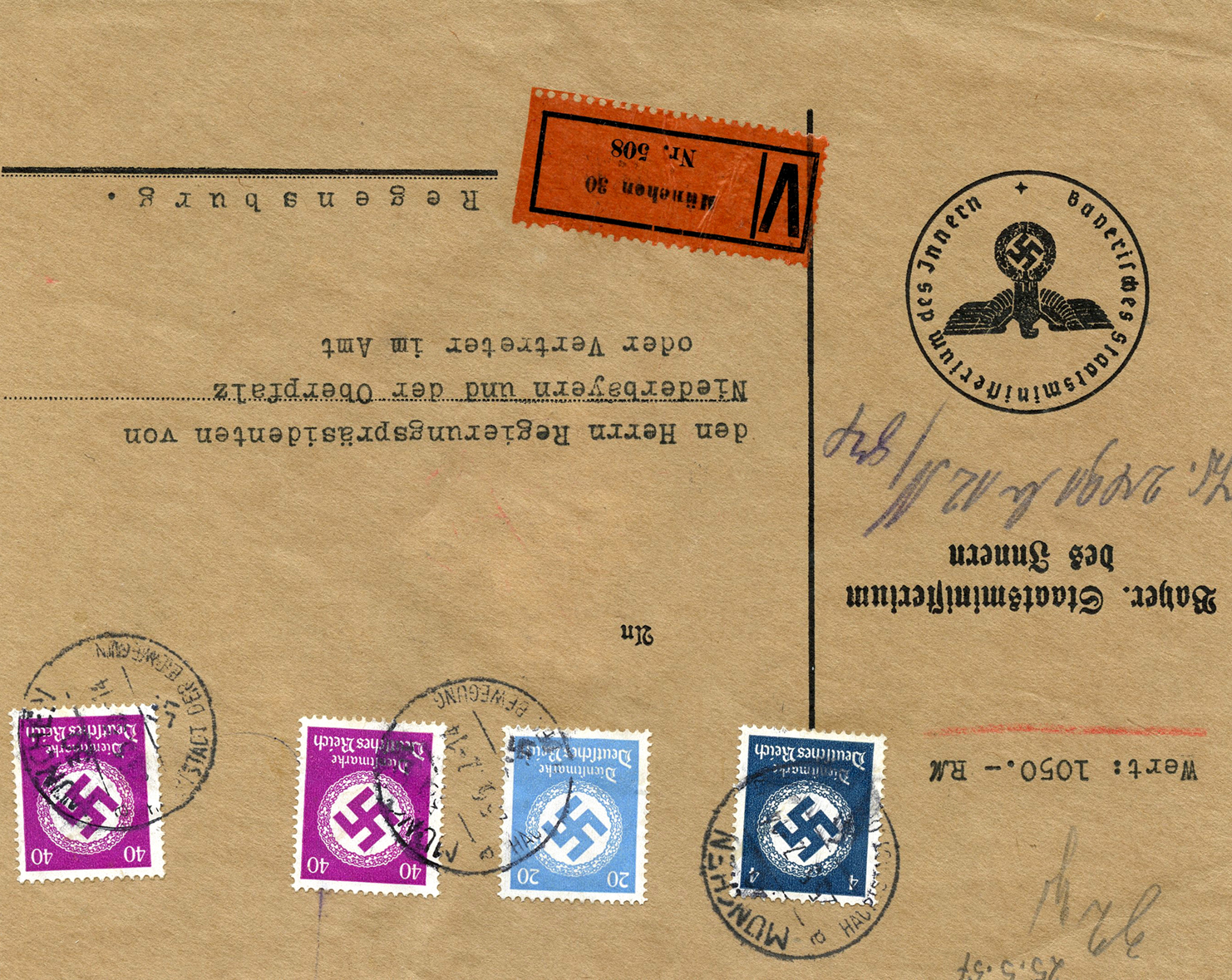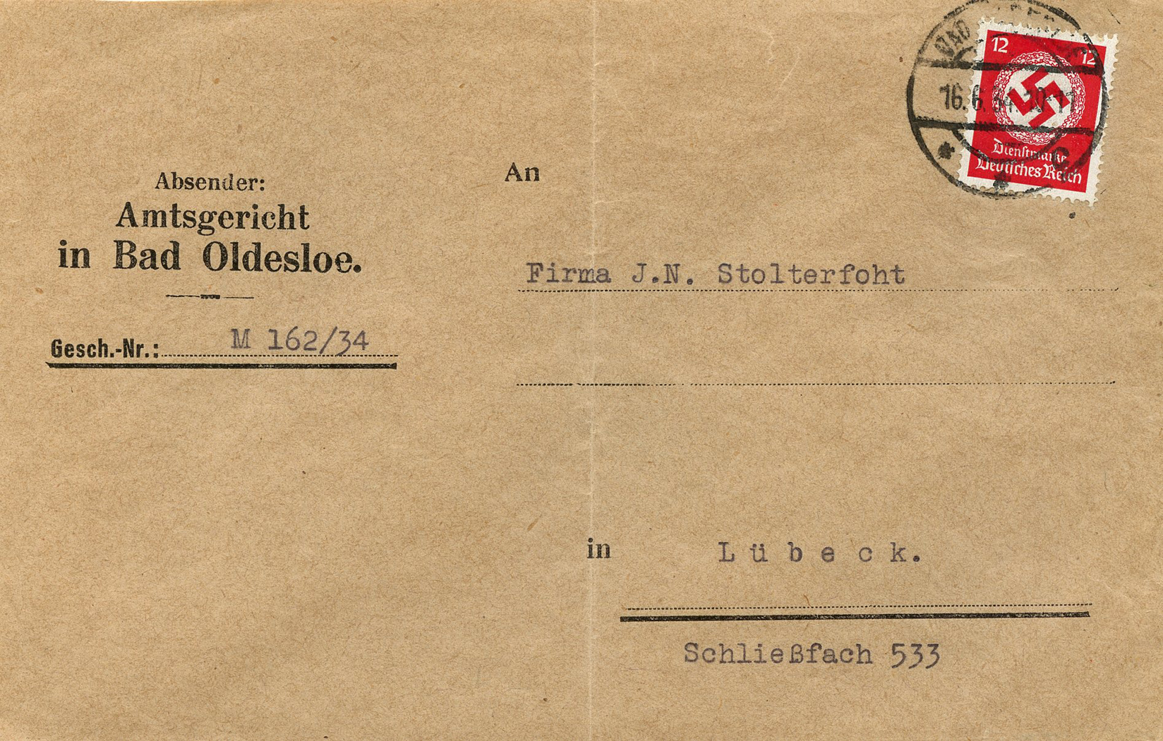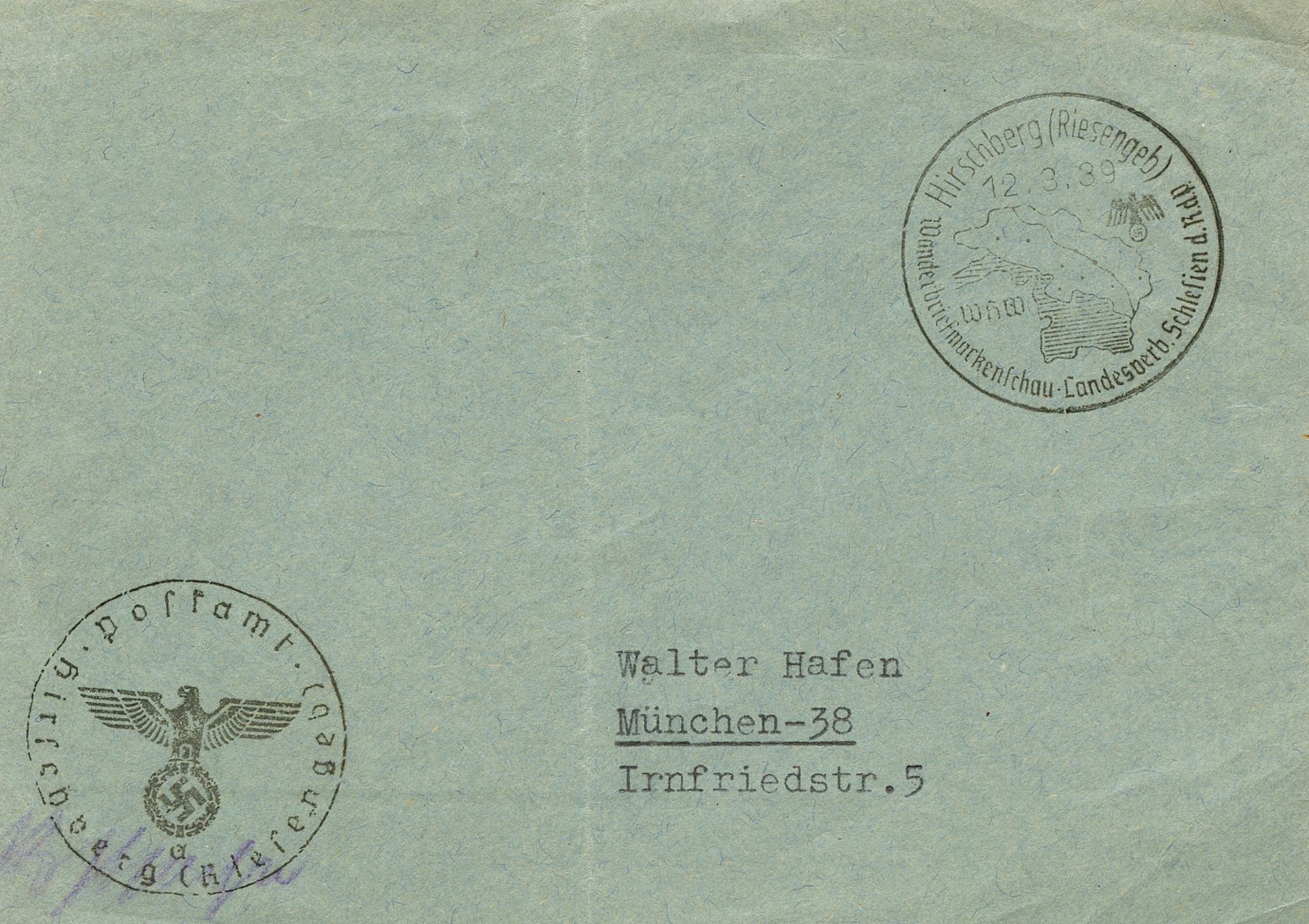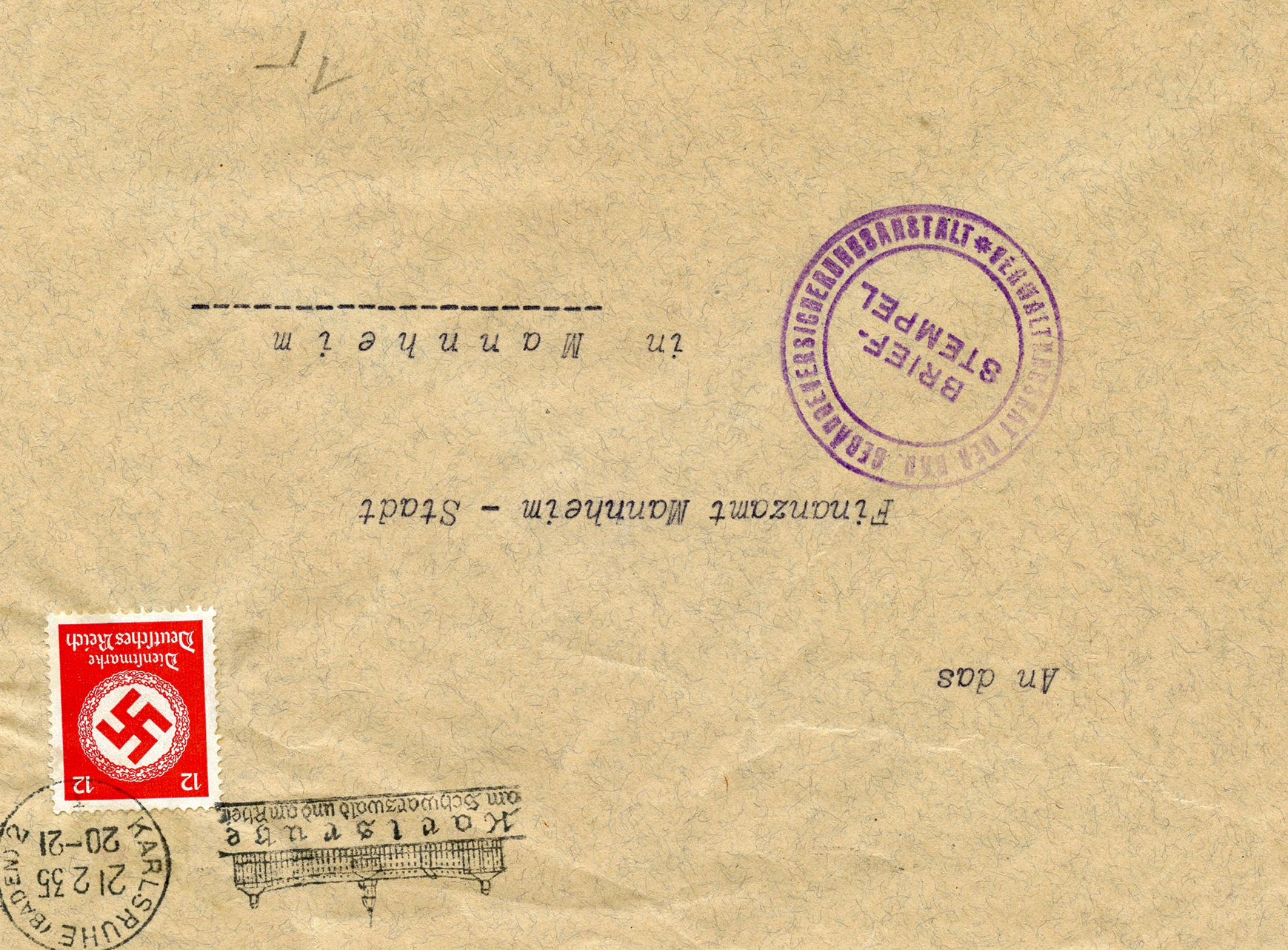 In the lower lefthand corner we see 'N.S.D. St. B.' which stands for Nationalsozialistischen Deutschen Studentenbund. Canceled on April 18, 1936.]
