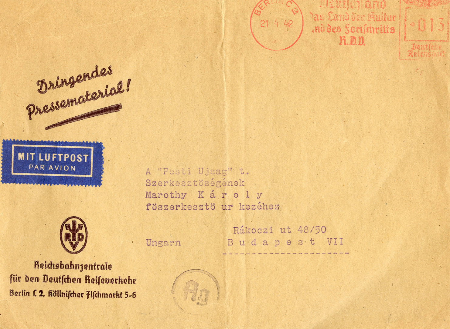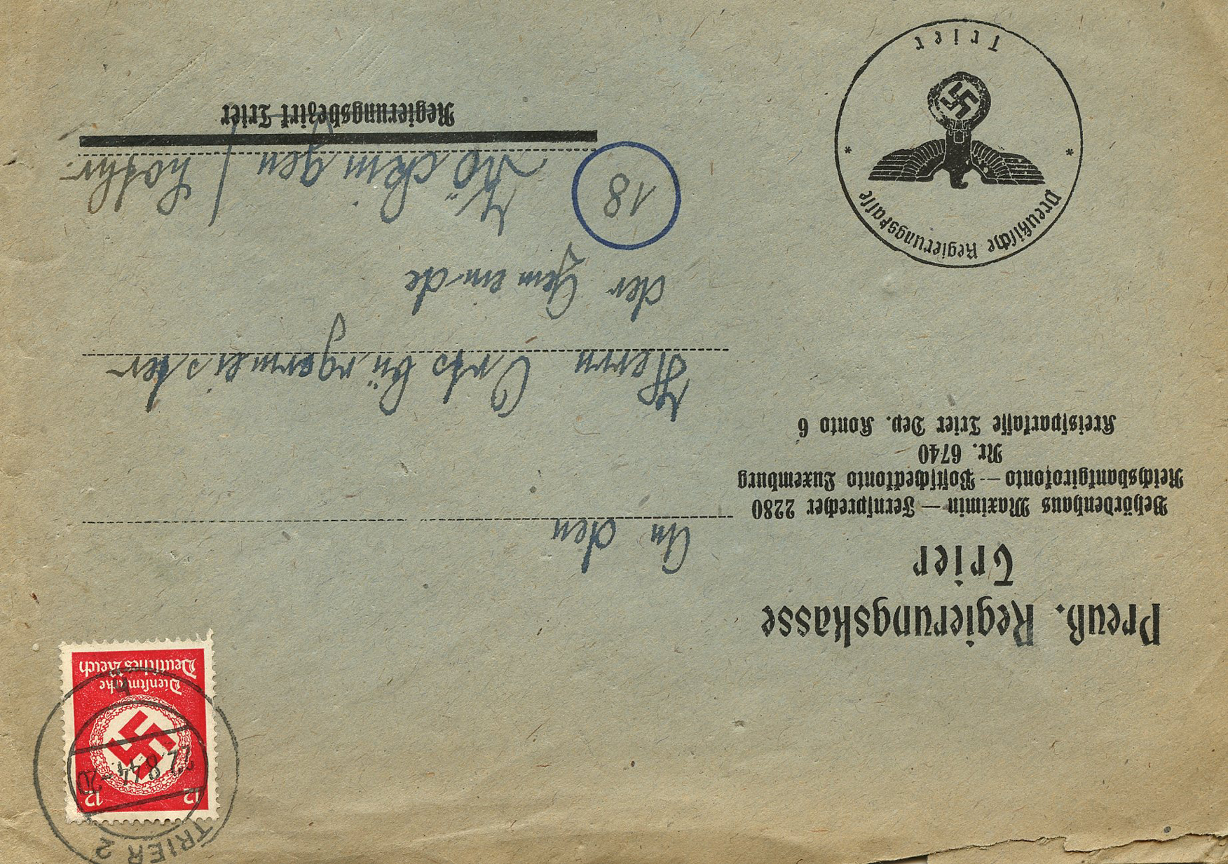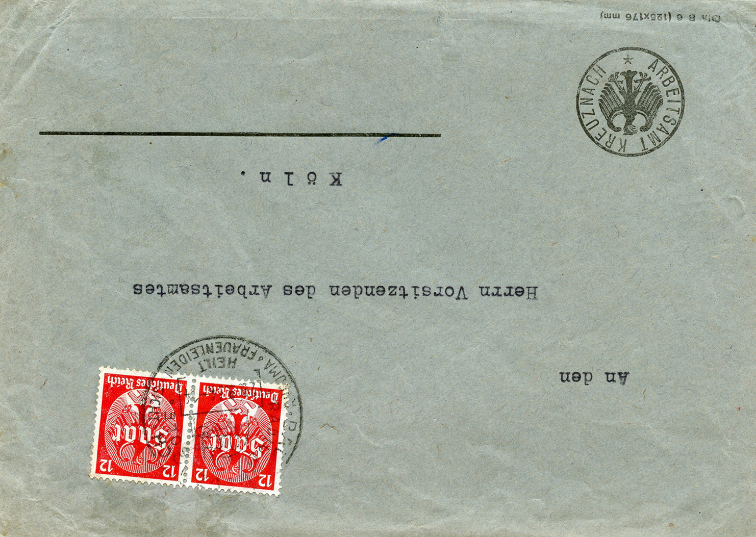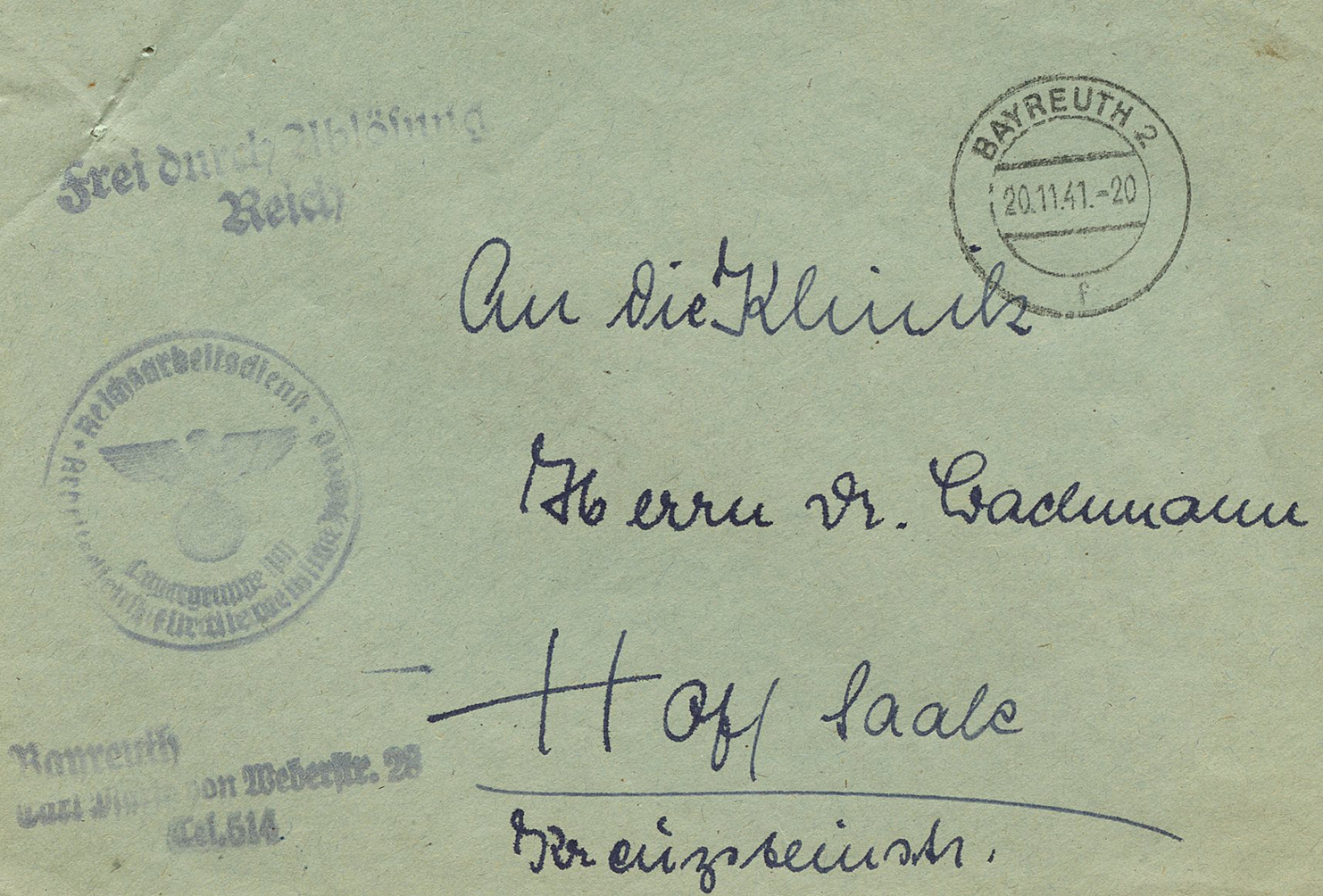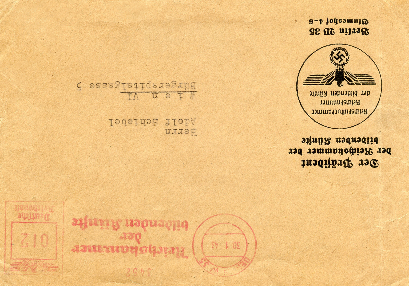 In the lower lefthand corner we see 'N.S.D. St. B.' which stands for Nationalsozialistischen Deutschen Studentenbund. Canceled on April 18, 1936.]