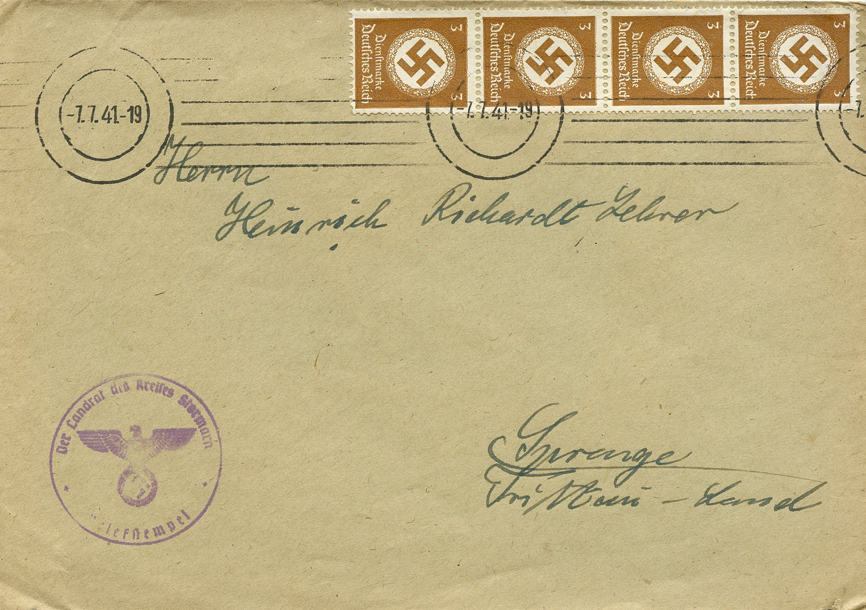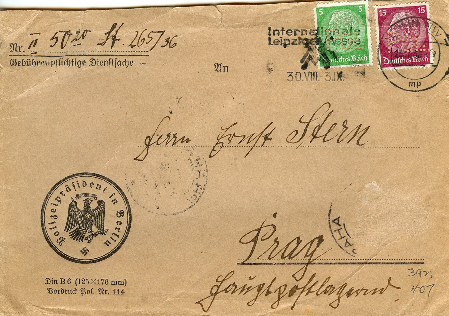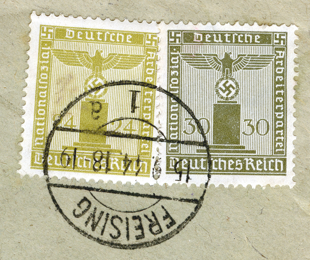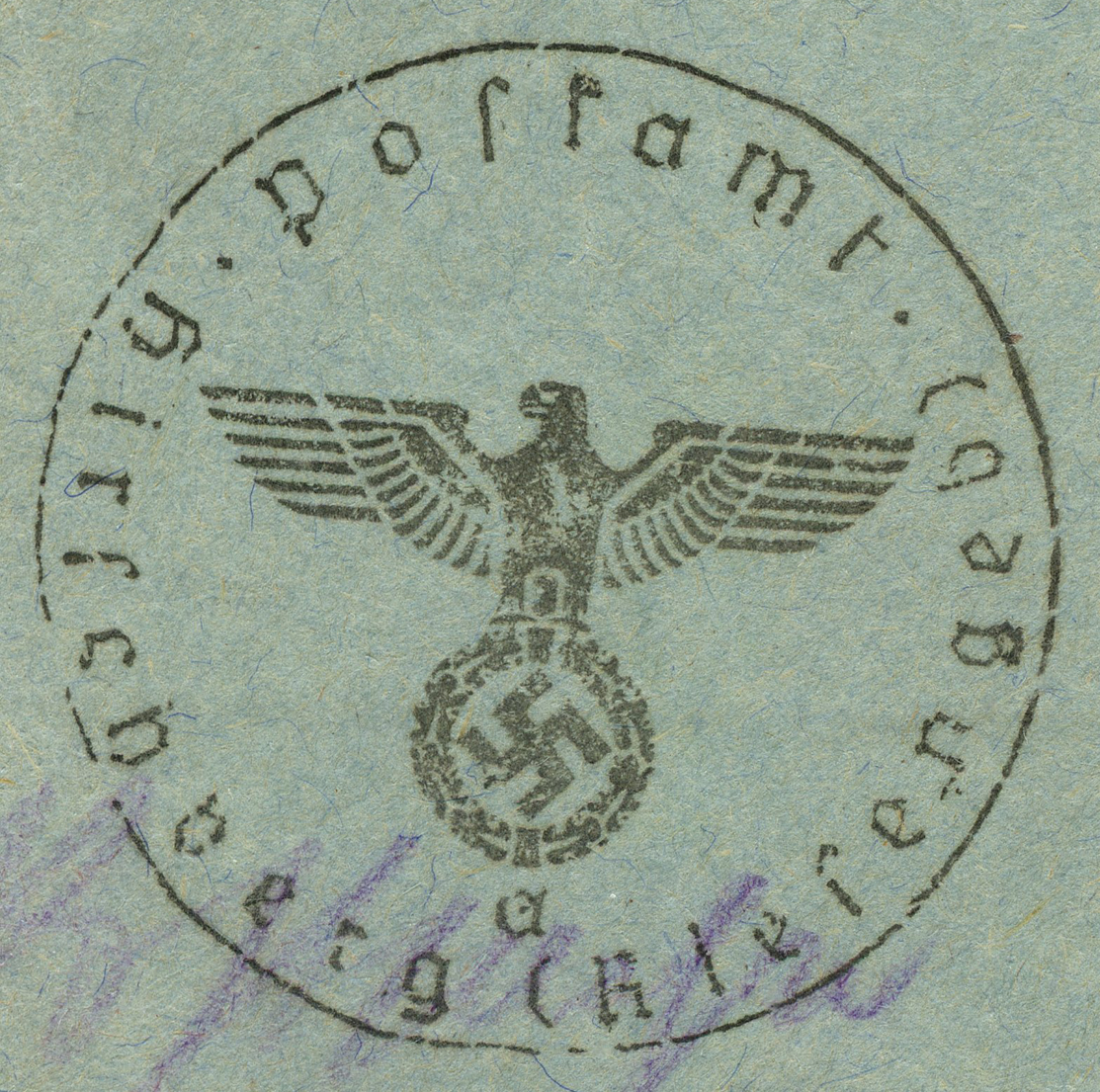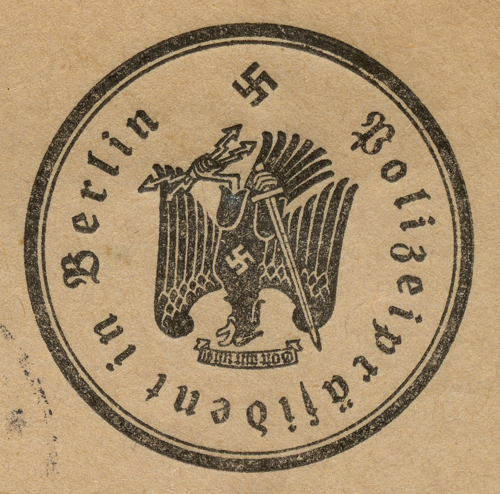 [Below: Note the stamps are perforated into the letters 'POL', this stands for polizei (police).]