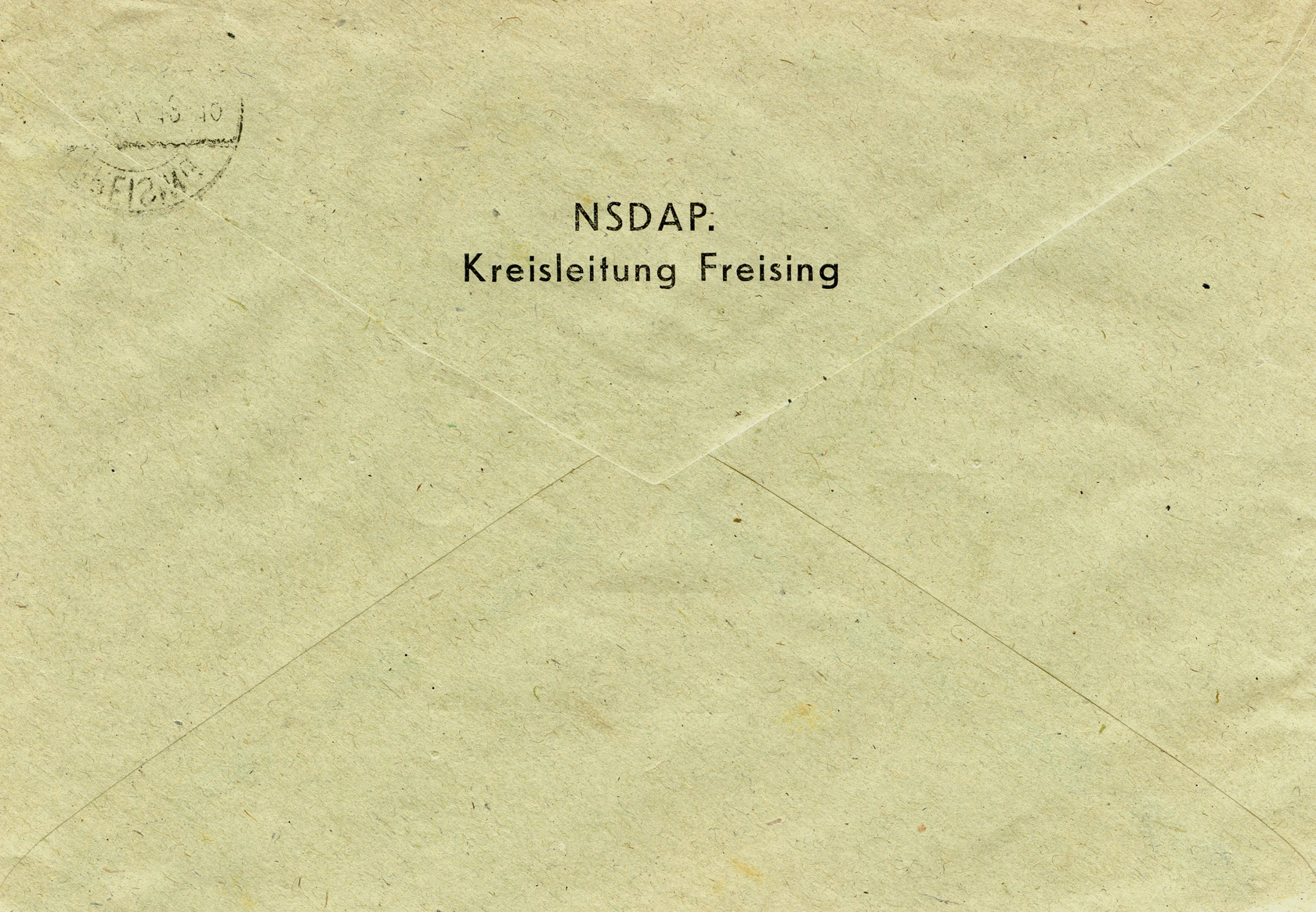 [Below: Reverse. This says 'NSDAP Kreisleitung Freising' (NSDAP District Leadership Freising). Freising is a town in Bavaria, Germany, with a population of about 50,000.]