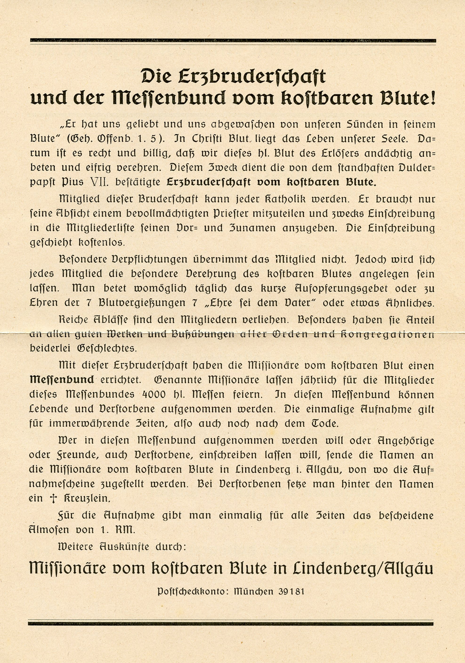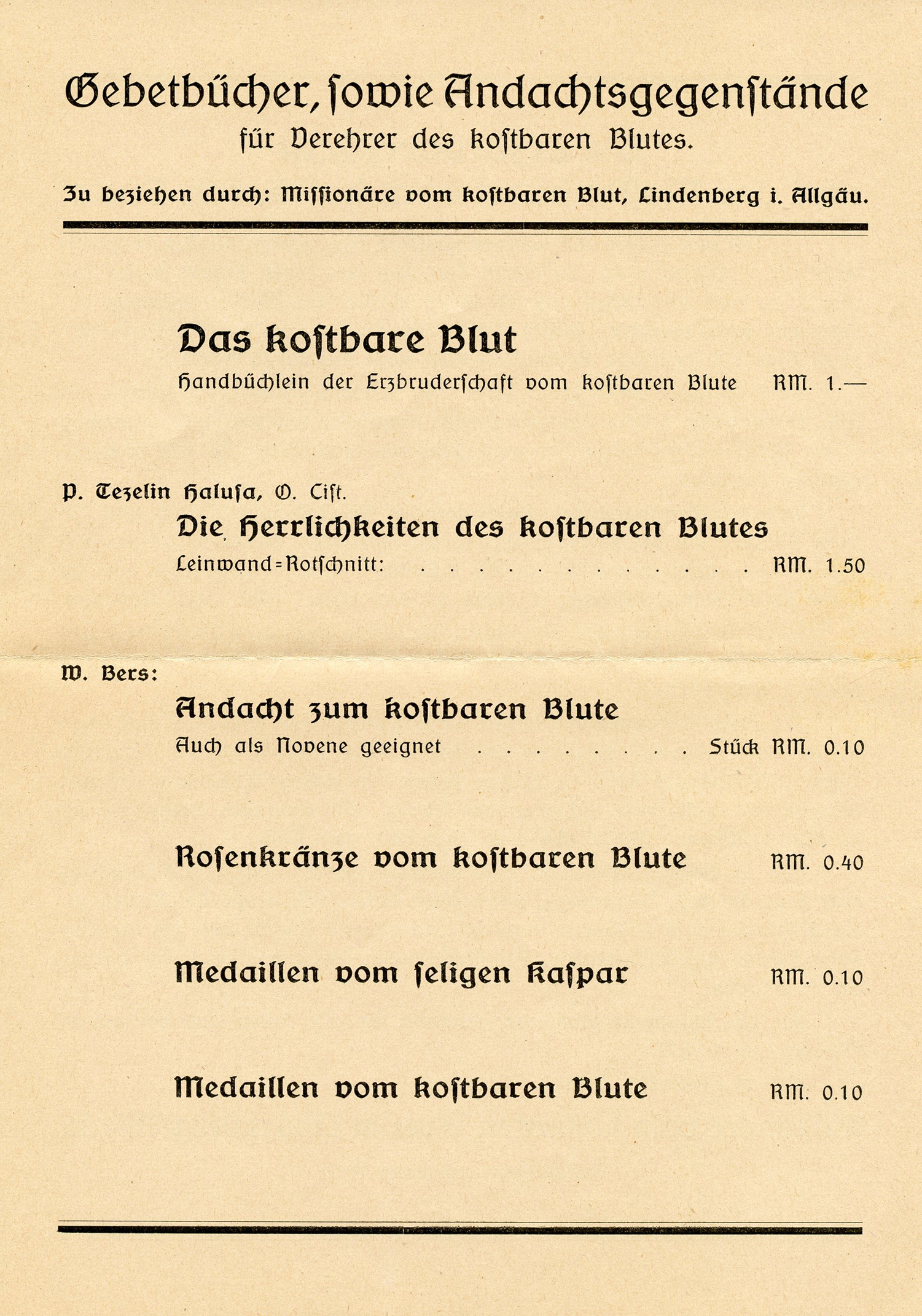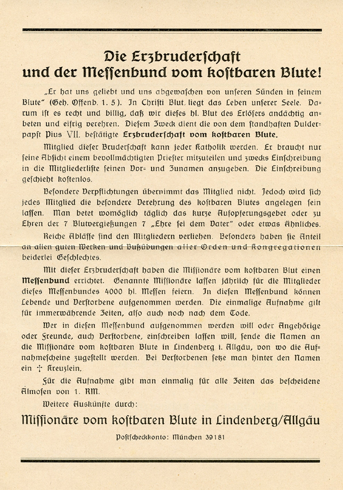 [Below: This 1939 envelope (and contents) is from 'Missionaries of the Precious Blood', obviously a vampire organization.]