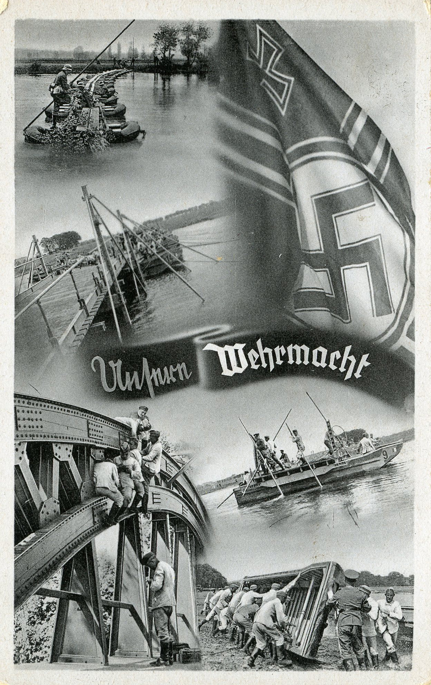 [Below: This postcard says: 'Unser Wehrmacht' (Our Army). Click to enlarge.]
