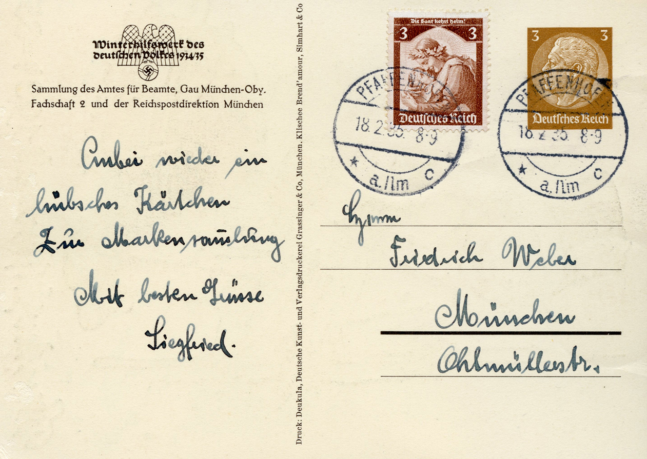 [Below: This was canceled on February 18, 1935 in Pfaffenhofen (a municipality in Bavaria). Click to enlarge.]