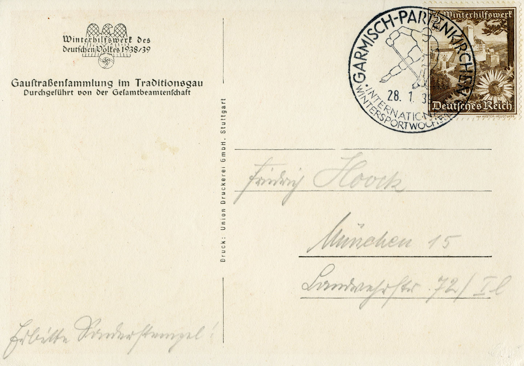 [Below: This is a fairly rare WHW (Winterhilfswerk des Deutschen Volkes, or Winter Relief of the German People) postcard. Click to enlarge.]