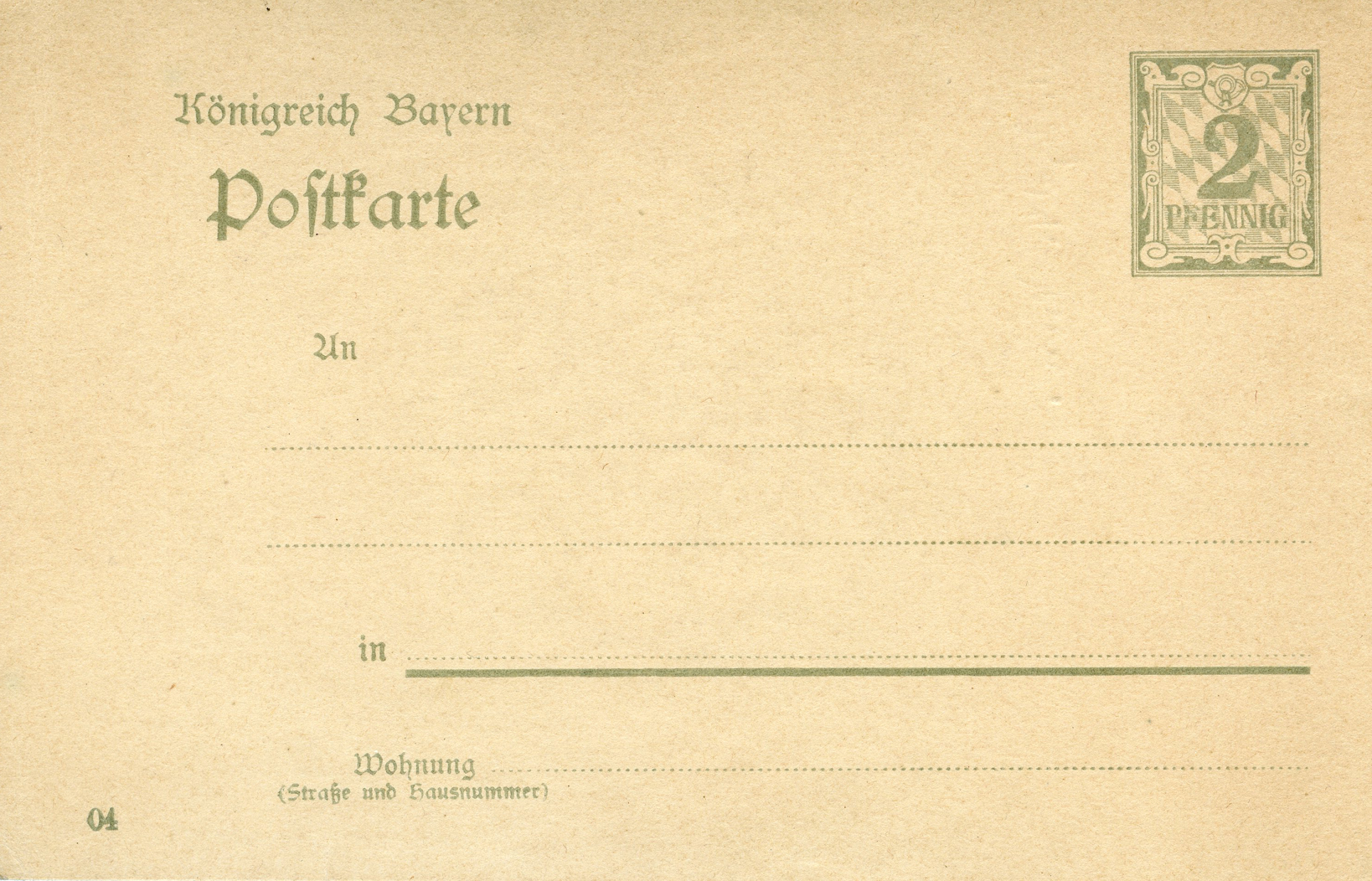 [Below: Reverse of postcard. This tells us that the postcard is from Bavaria (Bayern). Click to enlarge.]