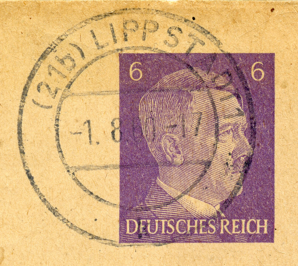 [Below: Now here is an oddity. A Hitler head postcard used in Germany on August 1, 1960! Very strange this got past the post office. Knowing Germany you could probably be arrested for trying to send a Hitler stamp through the mail.]