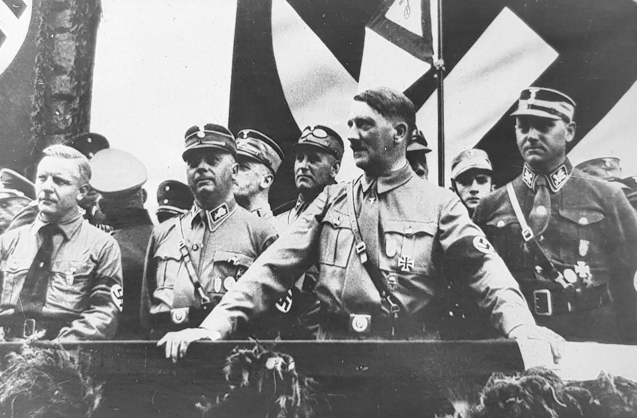 [Above: From left to right: Viktor Lutze (second from left), Adolf Hitler, Rudolf Hess and Julius Streicher, Nuremberg.]
