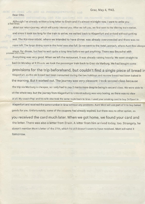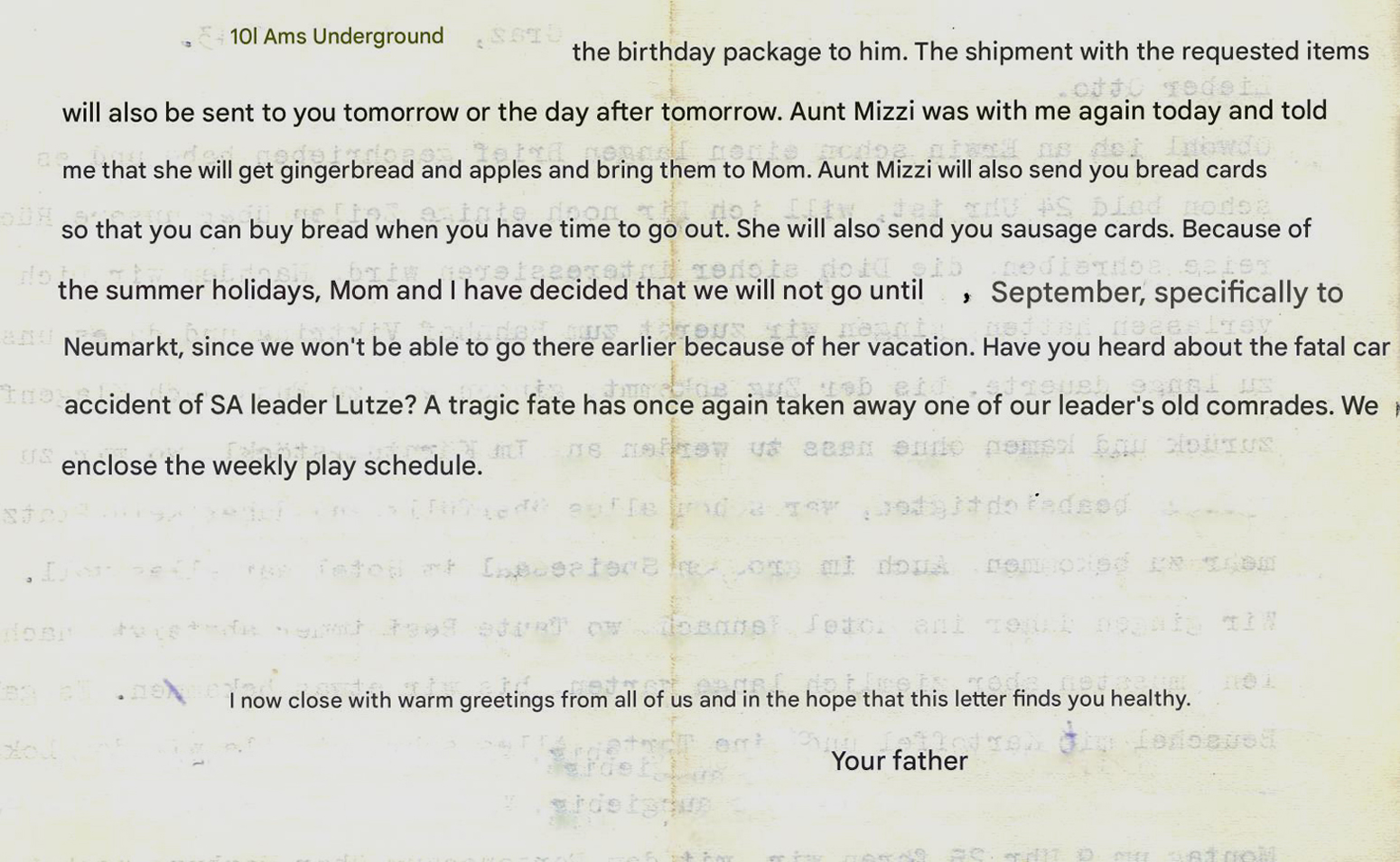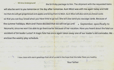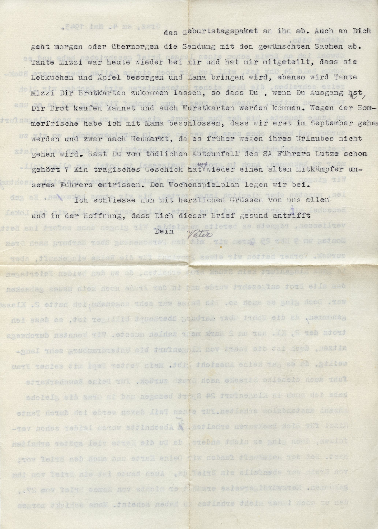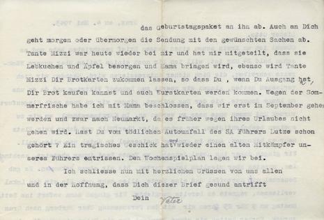 [Above: A German letter from May 1943 that mentions the tragic death of Victor Lutze.]