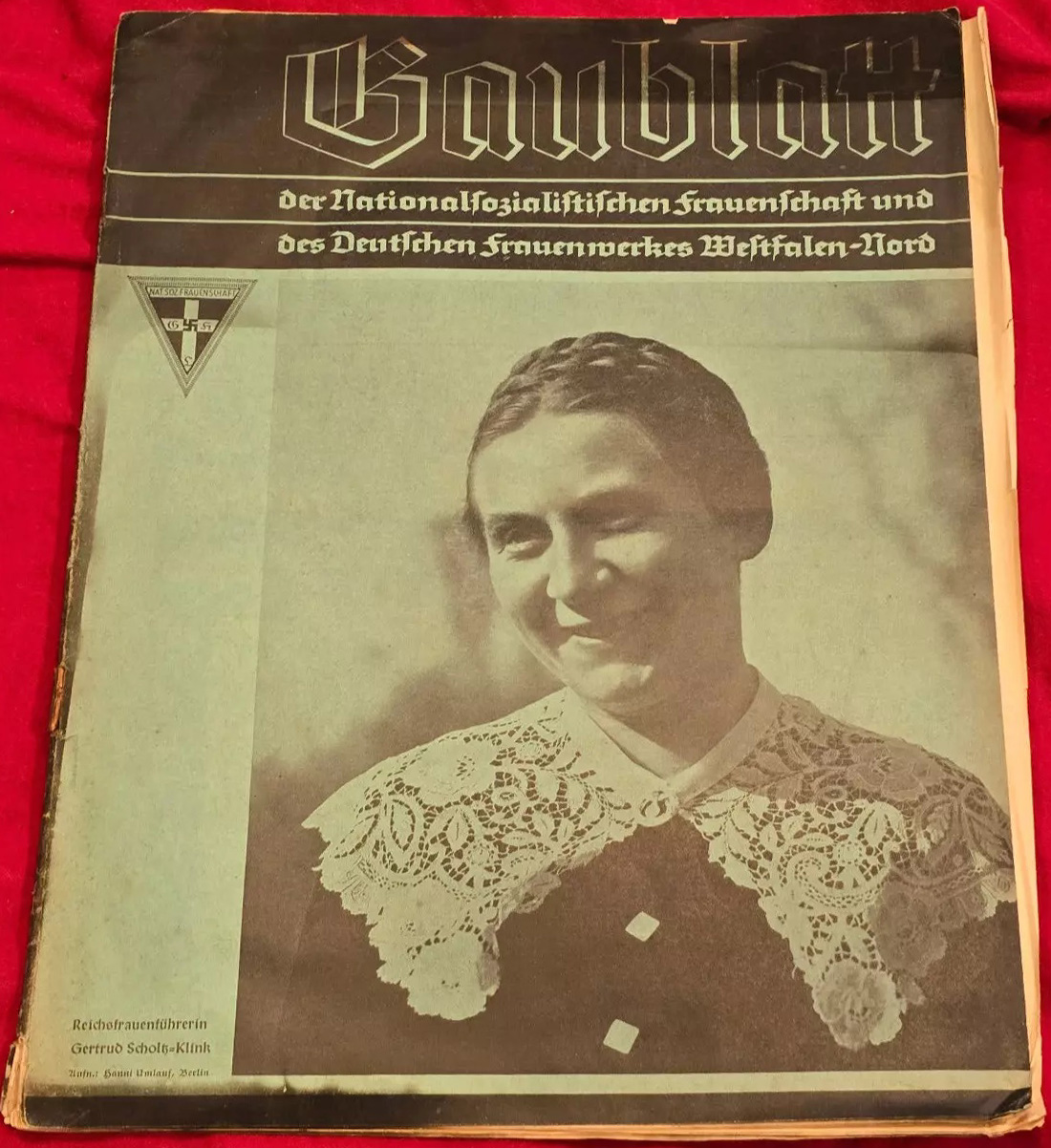 [Below: Gertrud Scholtz-Klink on the cover of Gaublatt magazine.]