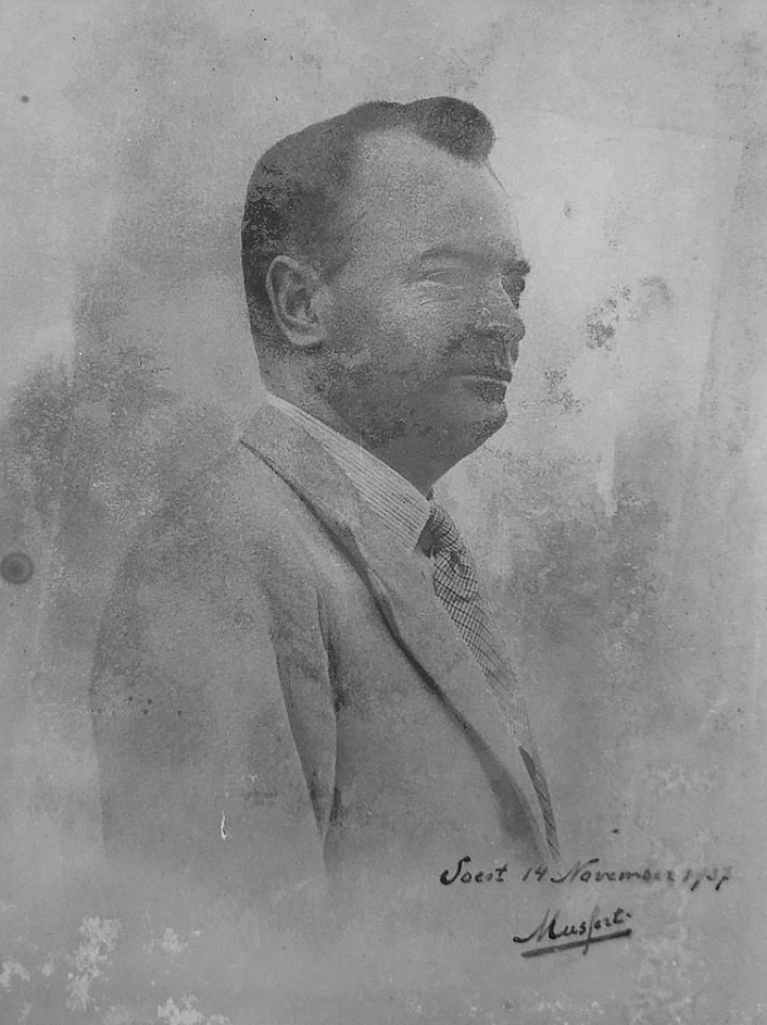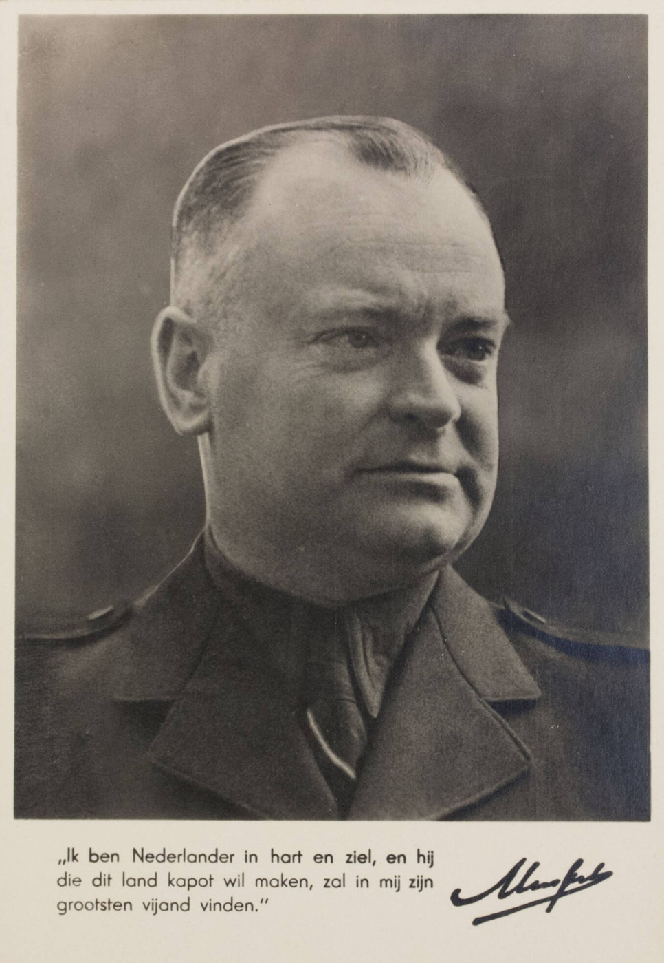 [Below: A badly damaged early photo from 1937 of Mussert (autographed).]