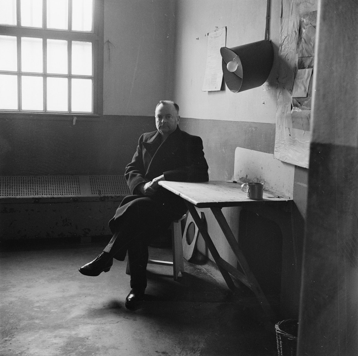 [Below: Anton Mussert in his cold cell. Click to enlarge.]