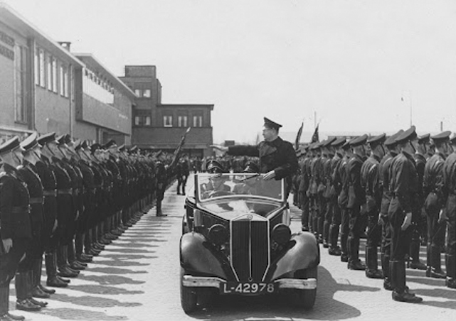 [Below: Anton Mussert inspects the Dutch NSB Motor Corps.]