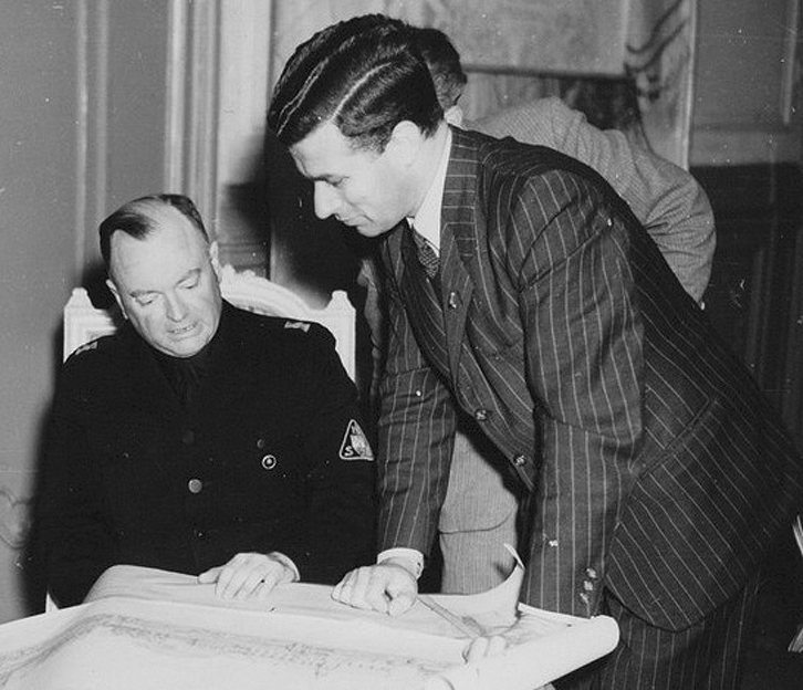 [Below: Anton Mussert and Flor Grammens, a Belgian politician and Flemish activist, 1940. Click to enlarge.]