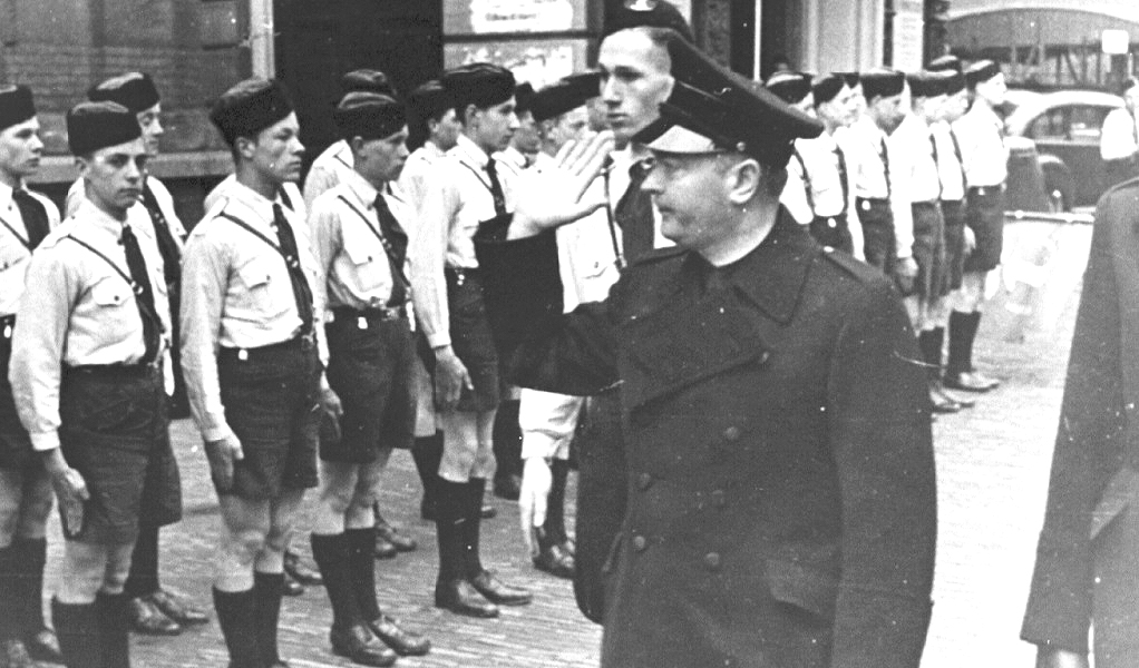 [Below: Anton Mussert reviewing the men of the NSB.]