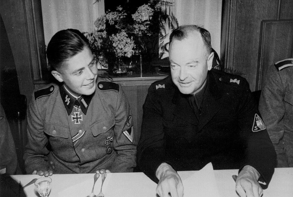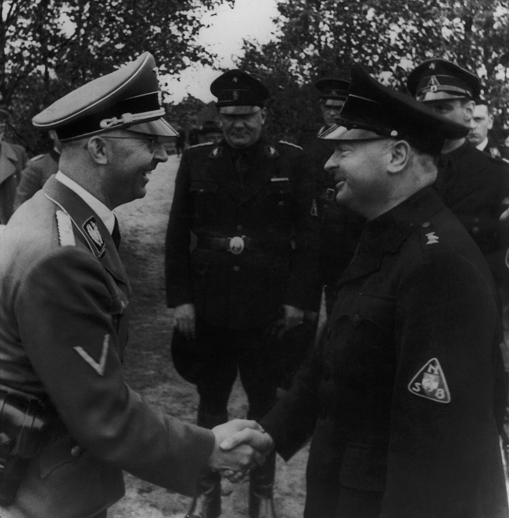 [Below: Anton Mussert with Heinrich Himmler during a private talk.]