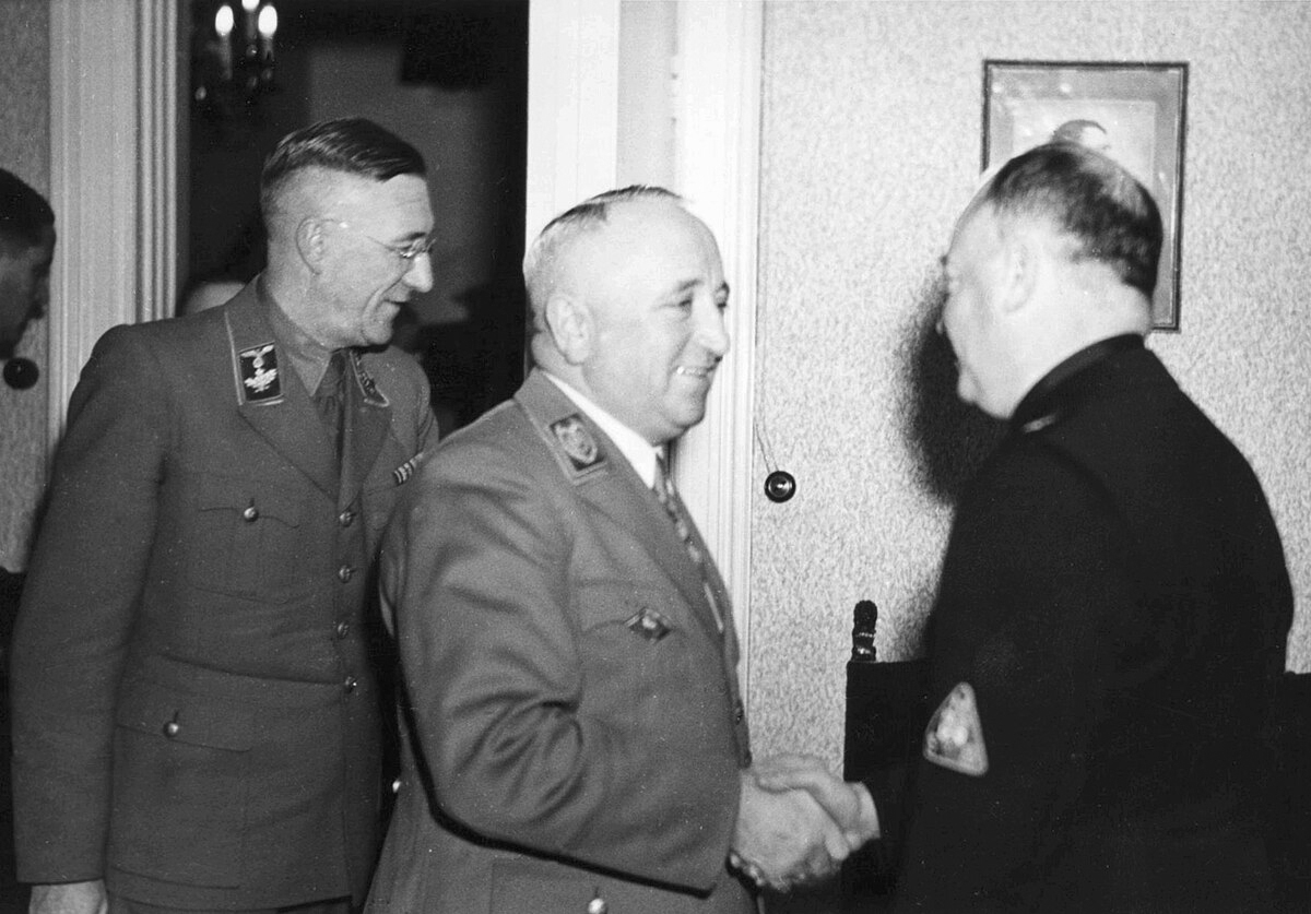 [Below: Anton Mussert with Heinrich Himmler and National Socialist Party treasurer Franz Xavier Schwartz.]