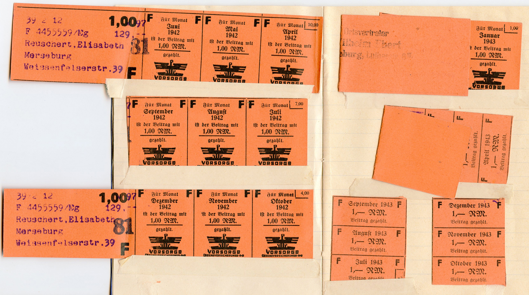 [Below: Many of the stamp strips have ink stamps on reverse. 'Ortsvertreter' just means Local Representative.]
