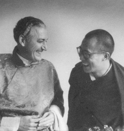 [Below: Miguel Serrano and the Dalai Lama after the Funeral of Indira Gandhi in 1984.]