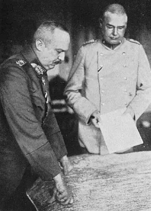 [Above: Ludendorff with his staff officer, Colonel Max Hoffmann.]