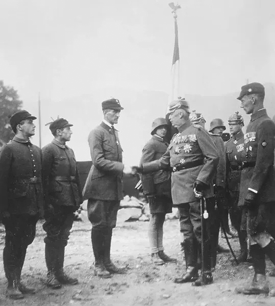 [Above: Hindenburg (left) and Ludendorff (right) with Kaiser Wilhelm II, January 1917.]
