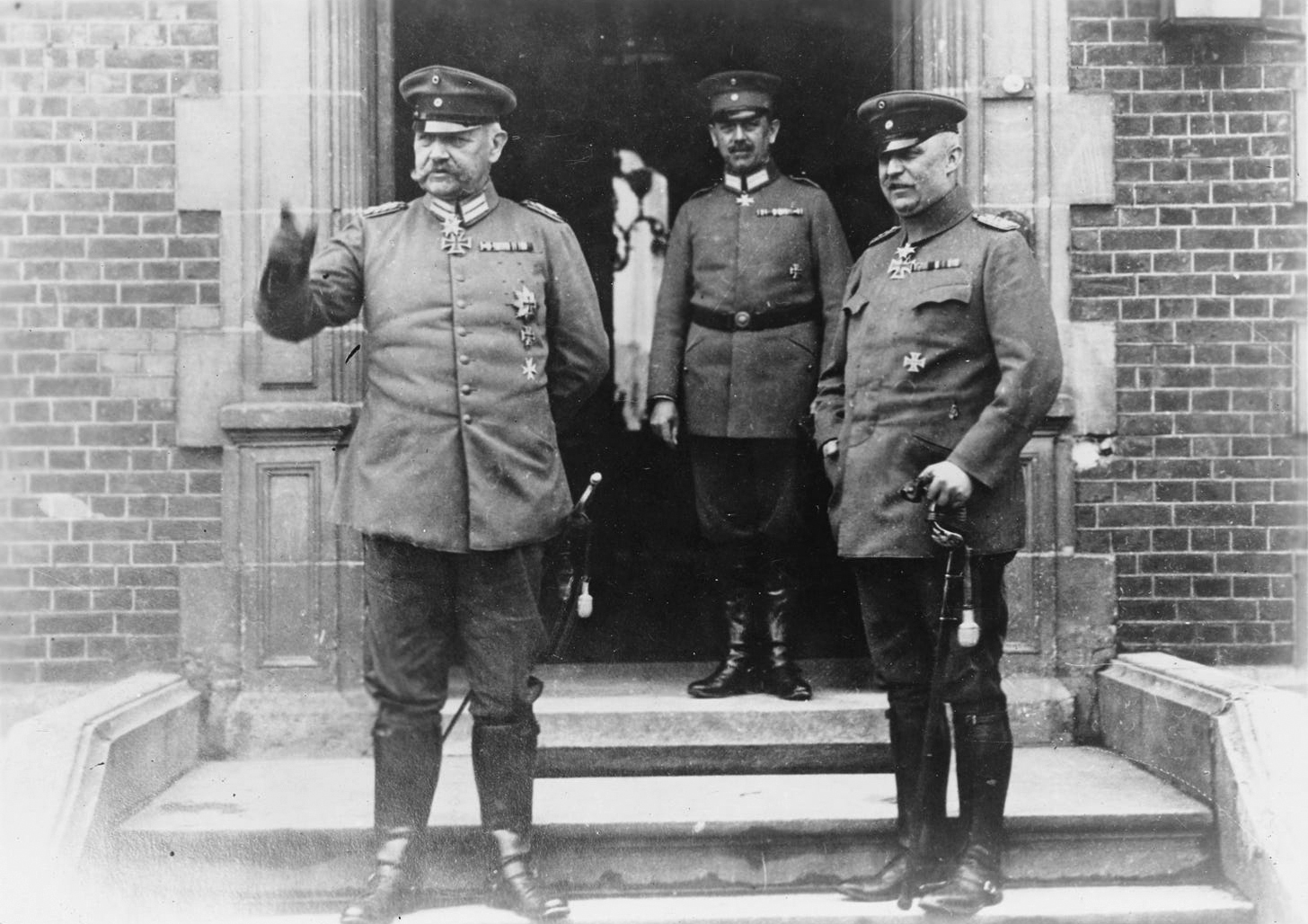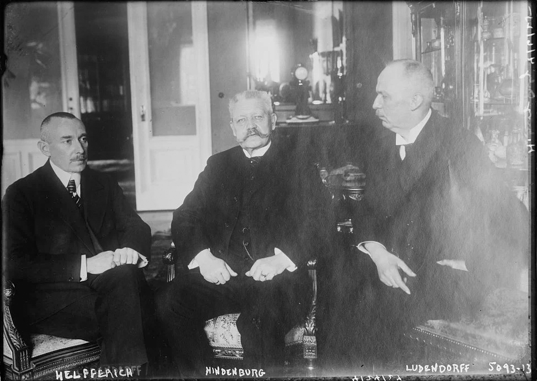 [Above: (left to right) Helfferich, Hindenburg and Ludendorff.]