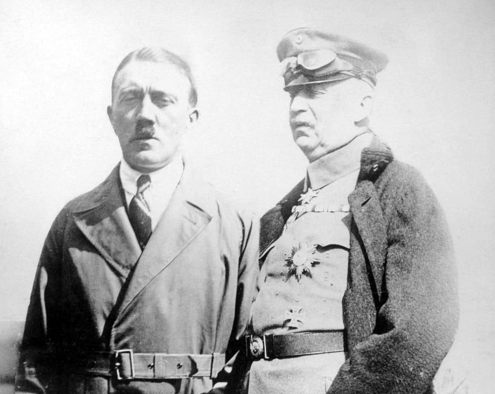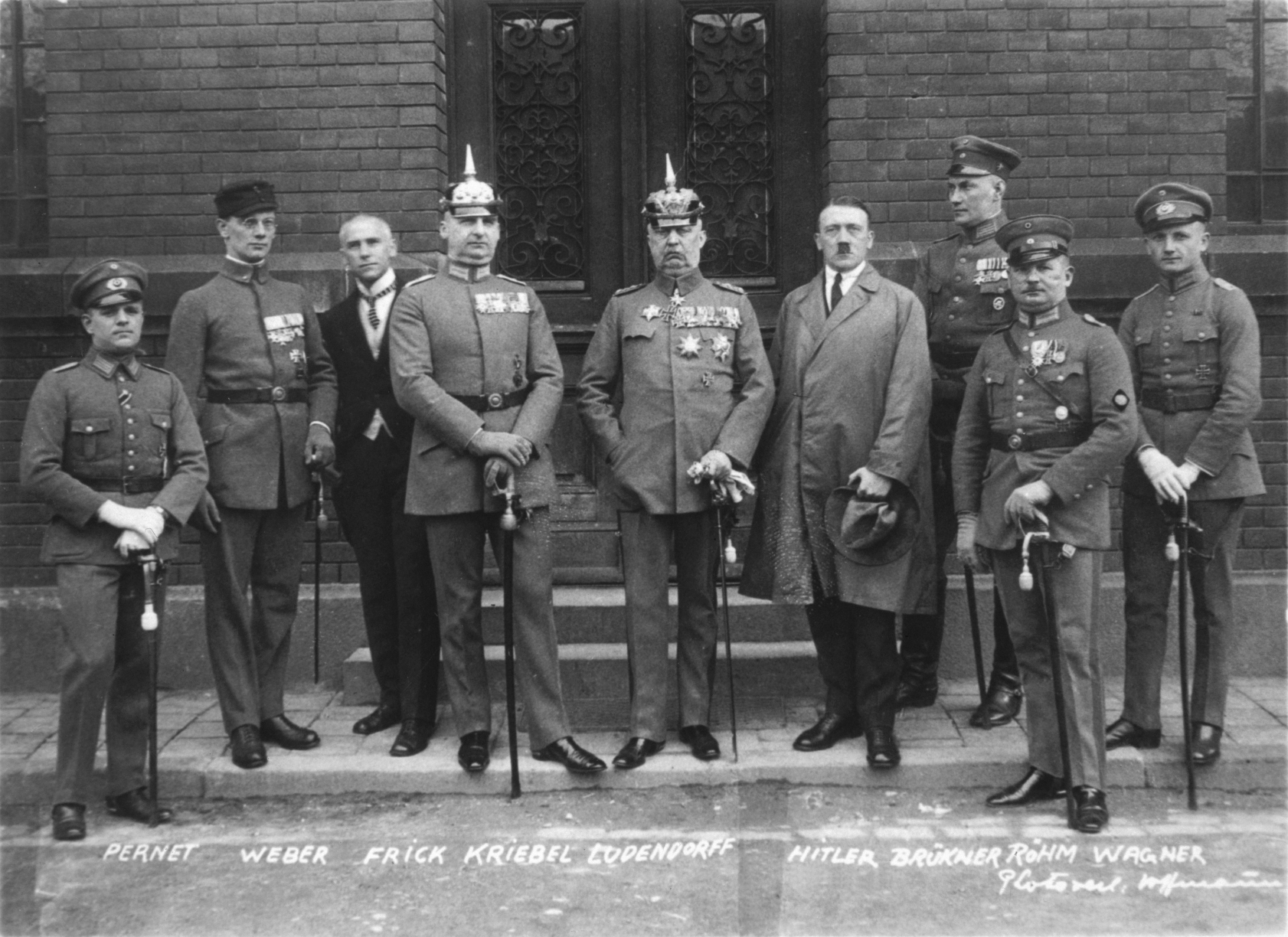 [Above: (from left to right) Ernst Röhm, Ludendorff and Hitler (and others), circa 1924.]