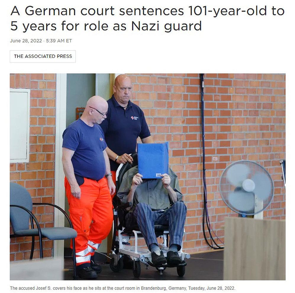 [Above: He was charged with 'aiding and abetting' and they claimed he killed 40,000 - 100,000 Jews. He got five years in prison. Lunacy.]