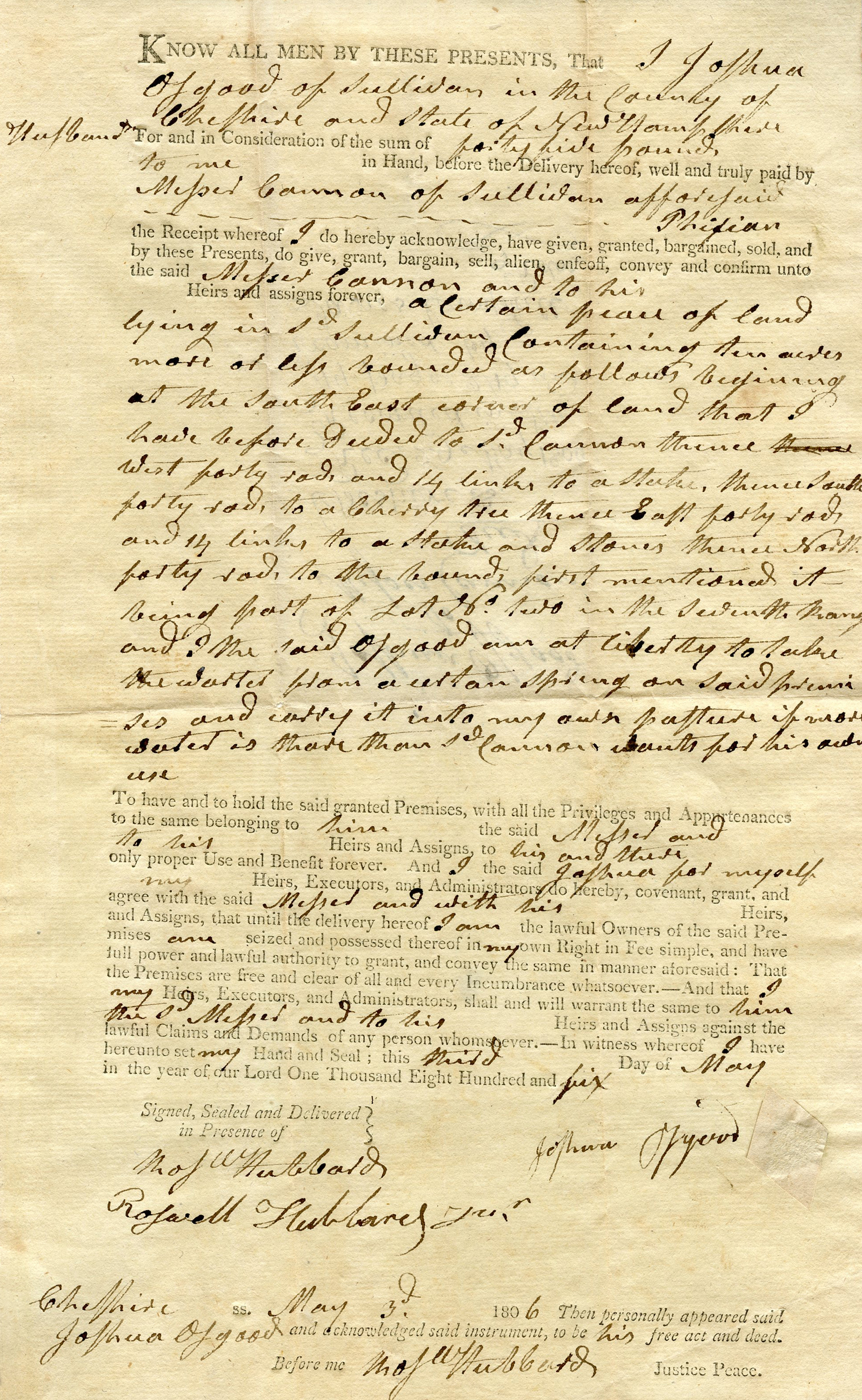 Note: Here are some random things I found interesting that were lying around waiting to be shared with you. First, this is a land deed from Cheshire County in southwestern New Hampshire, USA, from 1806! Only 41 years since the end of the American Revolution. It is made of a heavy scroll-like paper and it is a testament to its durability that it's still in near-perfect shape all these years later.