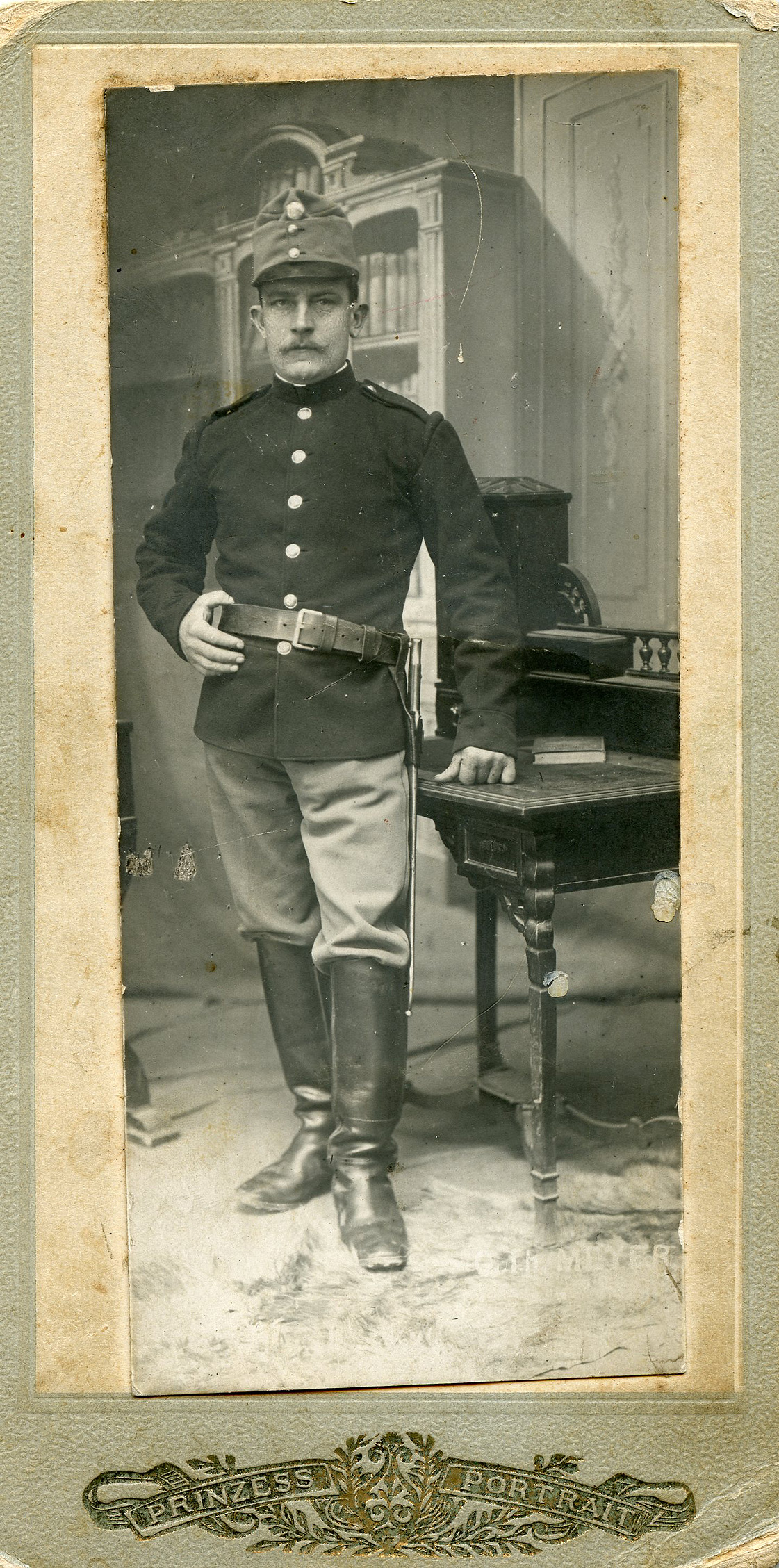 [Below: This soldier, from the Austro-Hungarian empire, way back when, tries his best to look masculine. Check out his bayonet, it's practically a sword. But then you look down to see the studio who took this photo... Prinzess Portrait! Princess?]