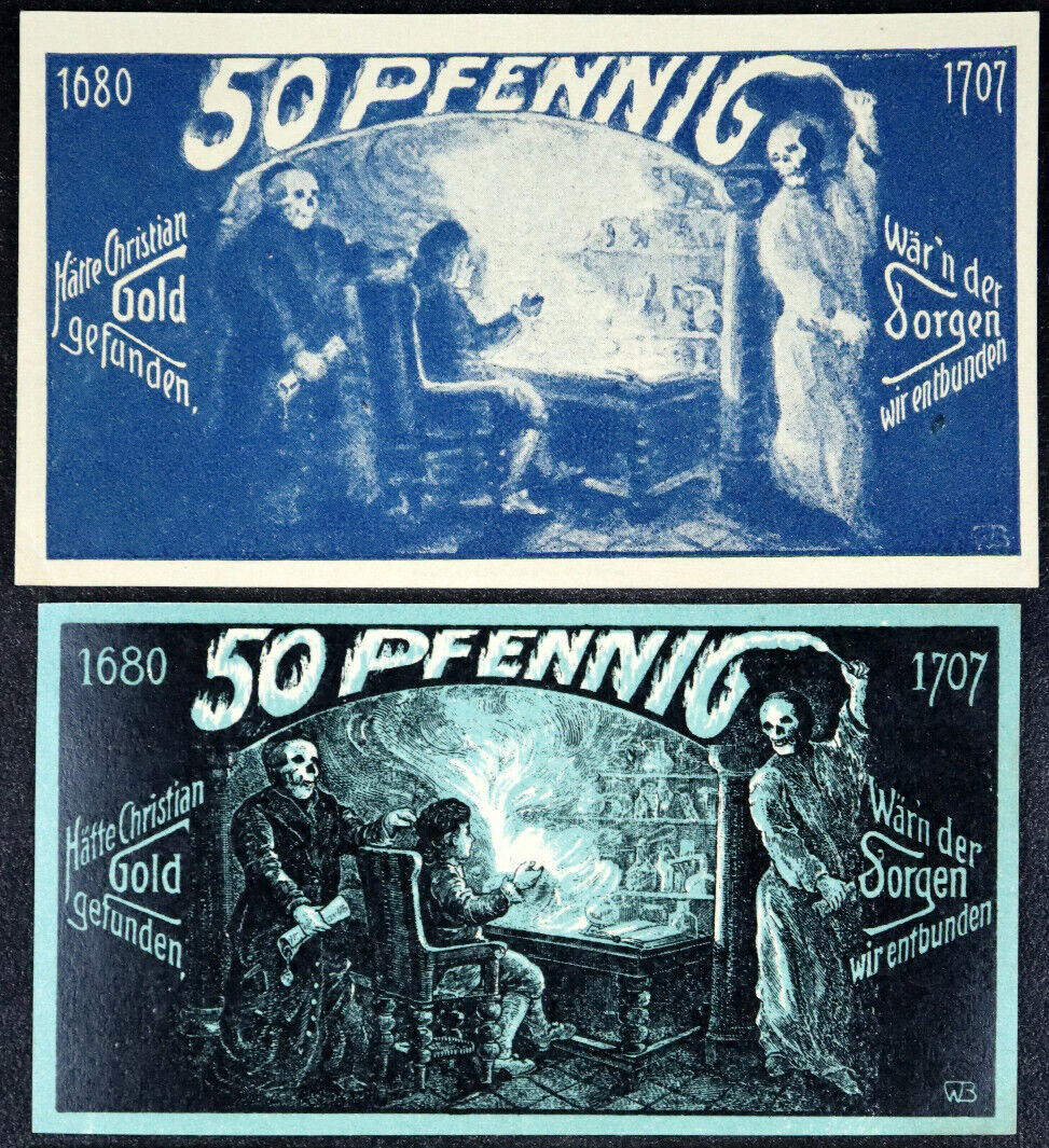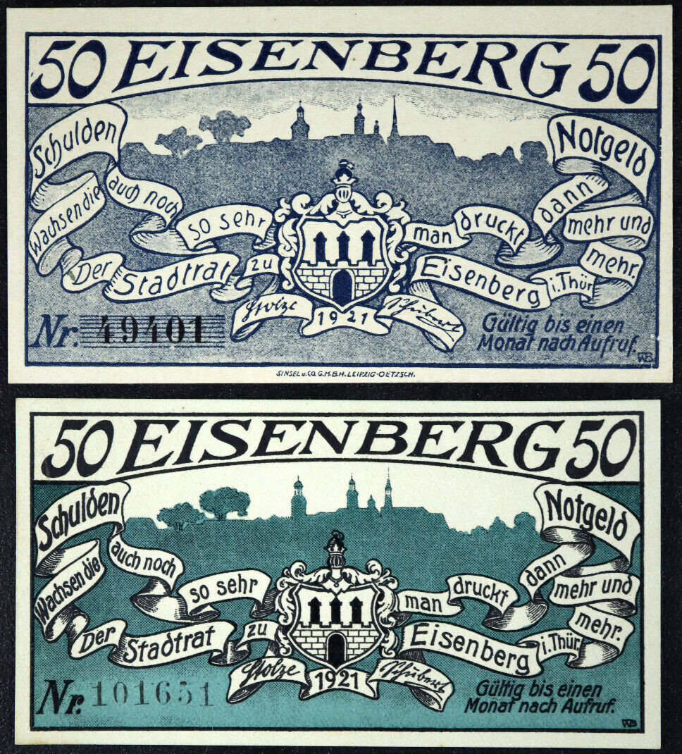 [Below: Notgeld, or emergency money, from Austria/Germany during the early 1920s. Front.]