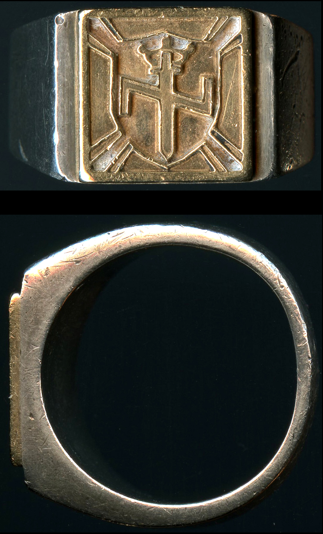 Note: I have a very strange story to share with you. I visited a precious metals/coin shop here in downtown, Omaha. With silver and gold prices so high people sell them lots of jewelry for scrap metal prices. The employee let me look at a box of jewelry that was about to be melted down. When I picked up the ring I was pretty shocked. I recognized the symbol instantly. But how in the world could it have gotten to Omaha? Who would have sold it for scrap? It has clearly been worn for many years by the wear, making it probably pretty special to someone.