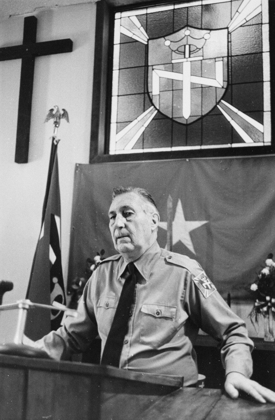 [Above: I've never seen the Adolf Hitler bust in other pictures of the Aryan Nations church.]