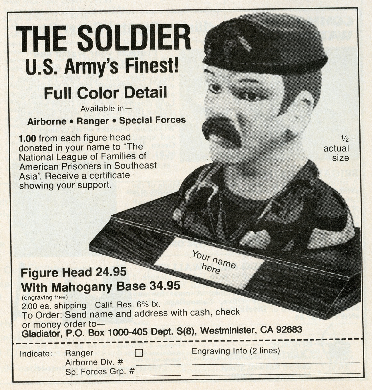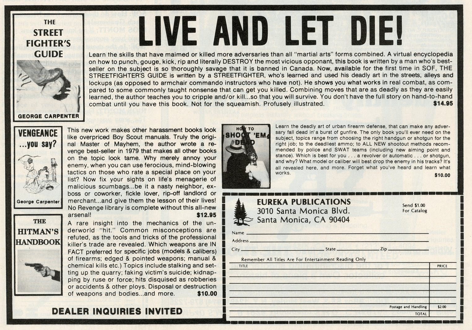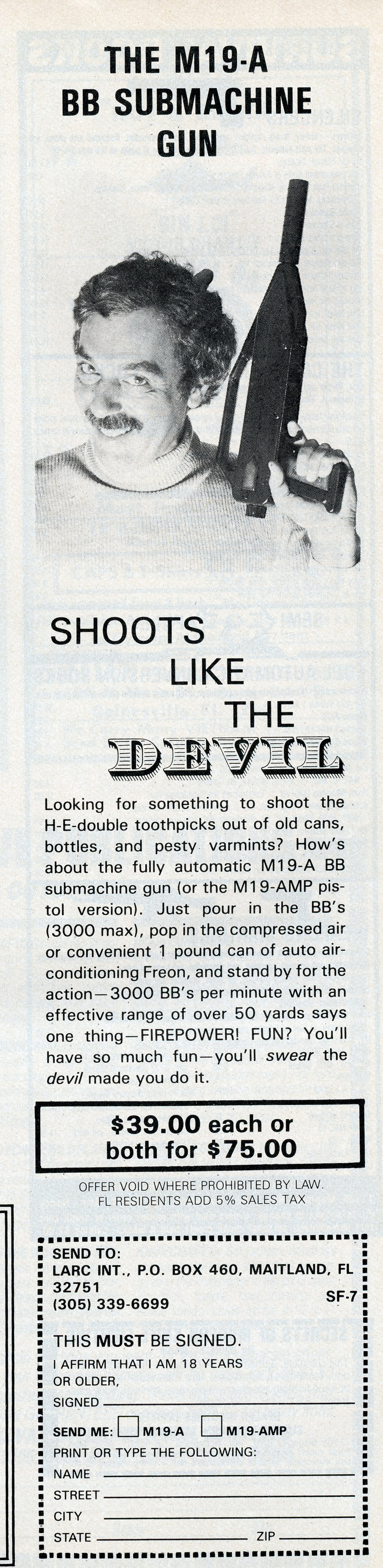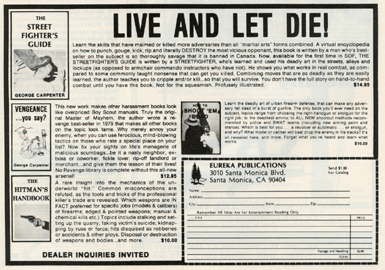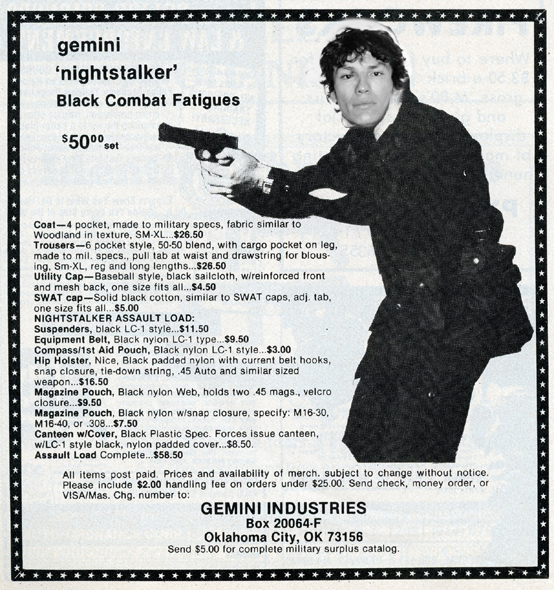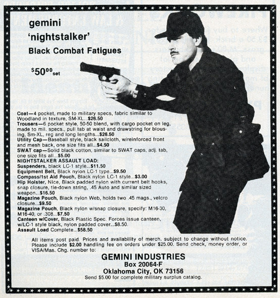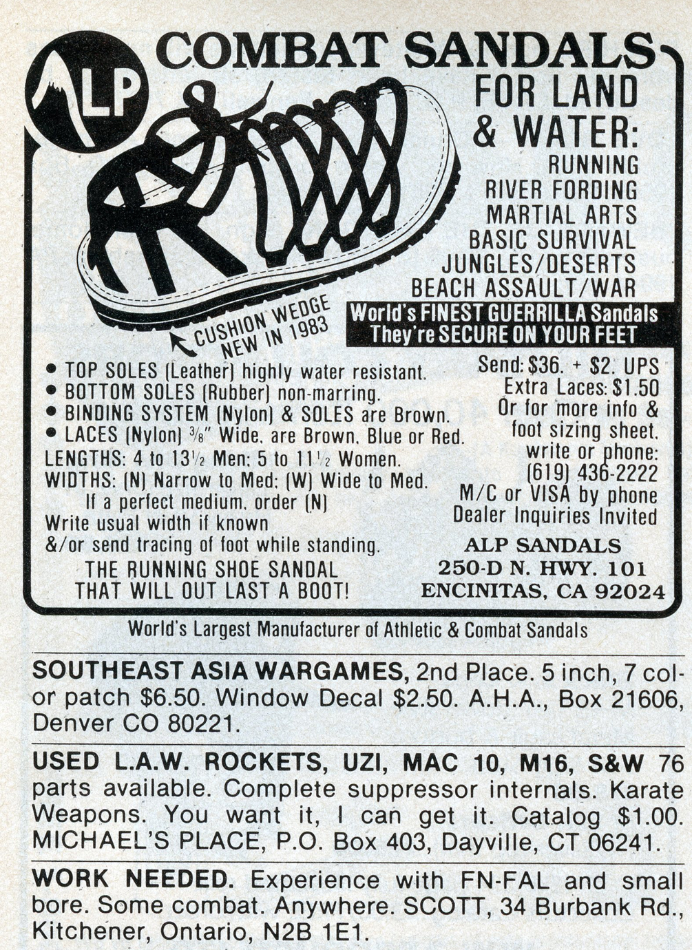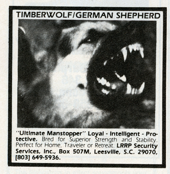 One of the most entertaining aspects of Soldier of Fortune was the personal ads and advertisements. The sheer number of illegal subjects advertised in one form or another is amazing. Compared to now, the 1980s were much freer. Below is a sample of material that you may find entertaining and/or interesting.