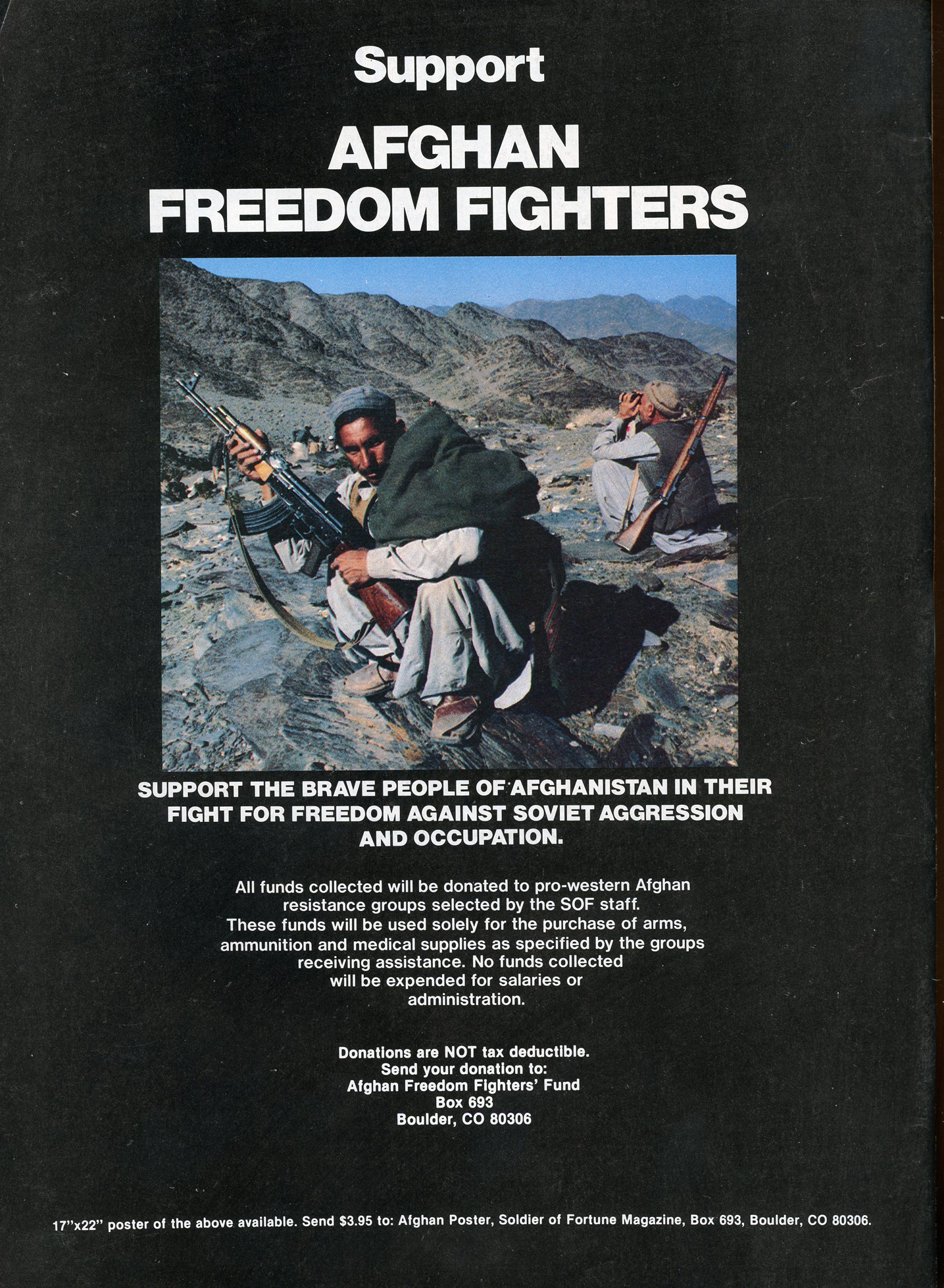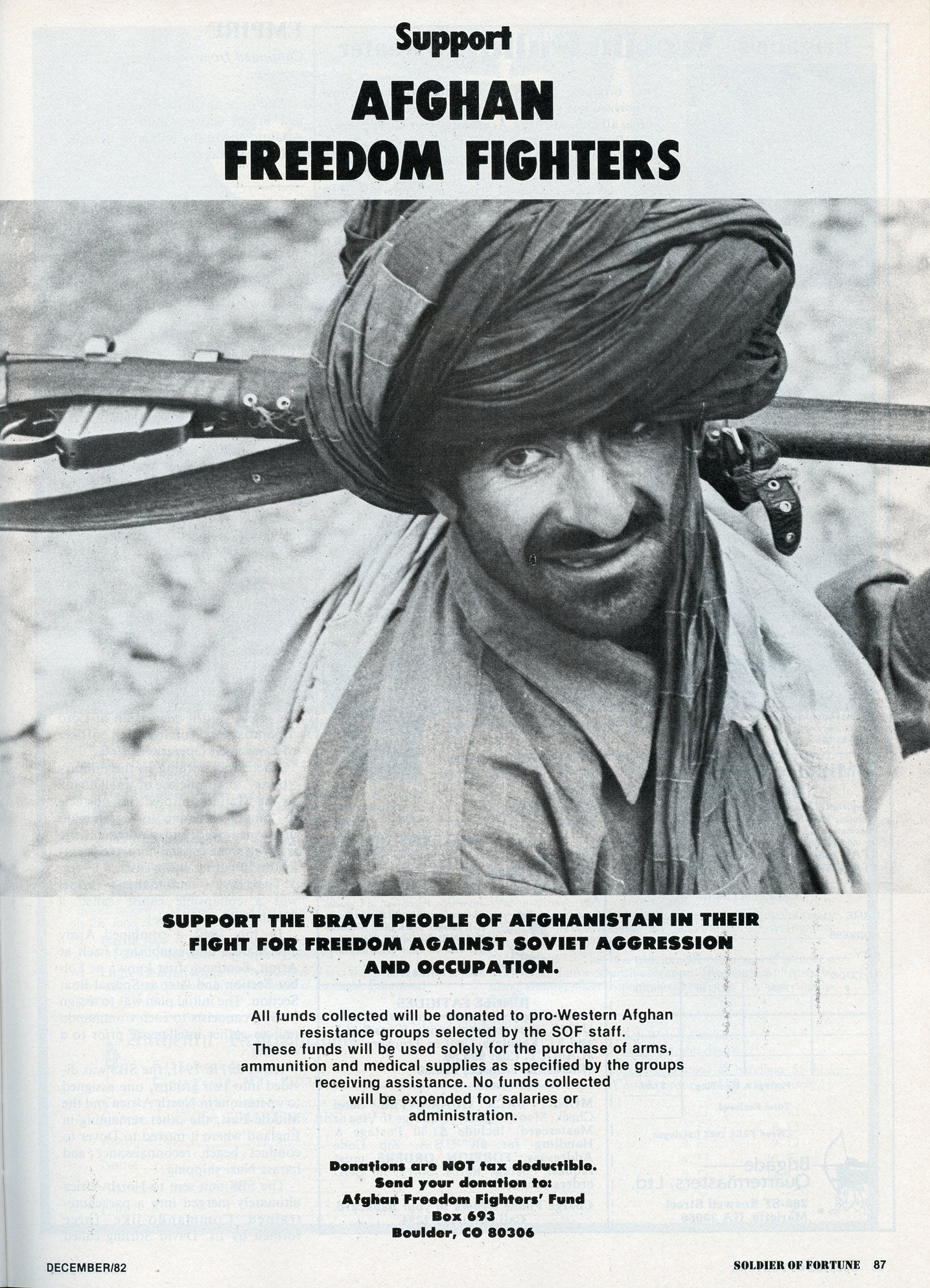 [Above: Was it that easy to just donate money to Afgan groups fighting the Soviets? The way I understand it the CIA was supplying arms and ammunition to them, including to Osama bin Laden.]