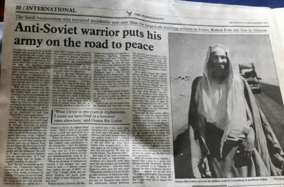 [Above: 1993 newspaper article praising bin Laden.]