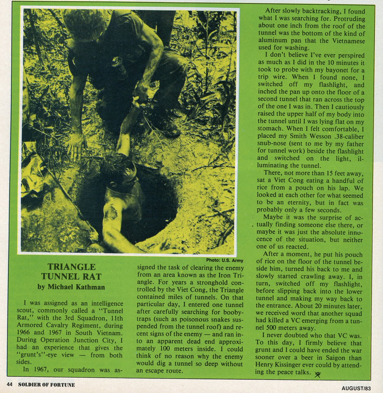 [Above: Okay but what happens when that enemy you let live goes on to kill your comrades? At least take him prisoner. Those tunnel rat guys were crazy, being the most dangerous job of the war.]